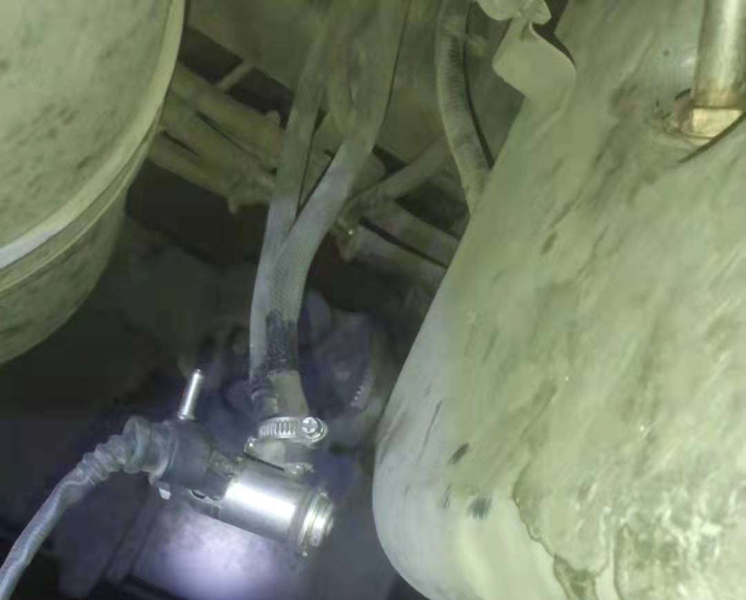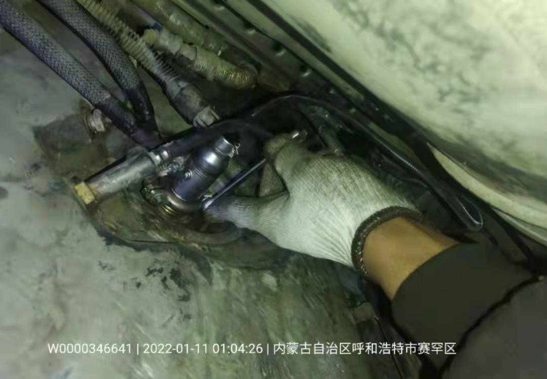 维修师傅分秒必争,快速试车后,发现尿素消耗量大,通过建压检查,发现尿素喷嘴常开。维修师傅迅速按照流程拍照记录,此时心系用户的郭建强已钻到车底开始拆卸,拍照维修同时进行,一刻也不耽误。不一会,车辆故障解除。