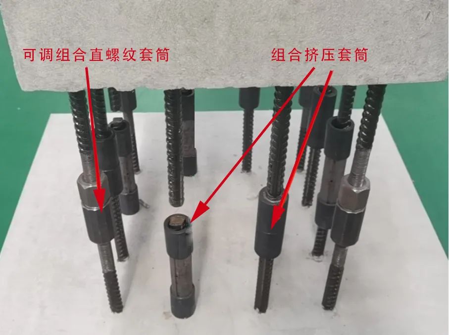 图5 可调组合直螺纹套筒+组合挤压套筒连接方案现场图