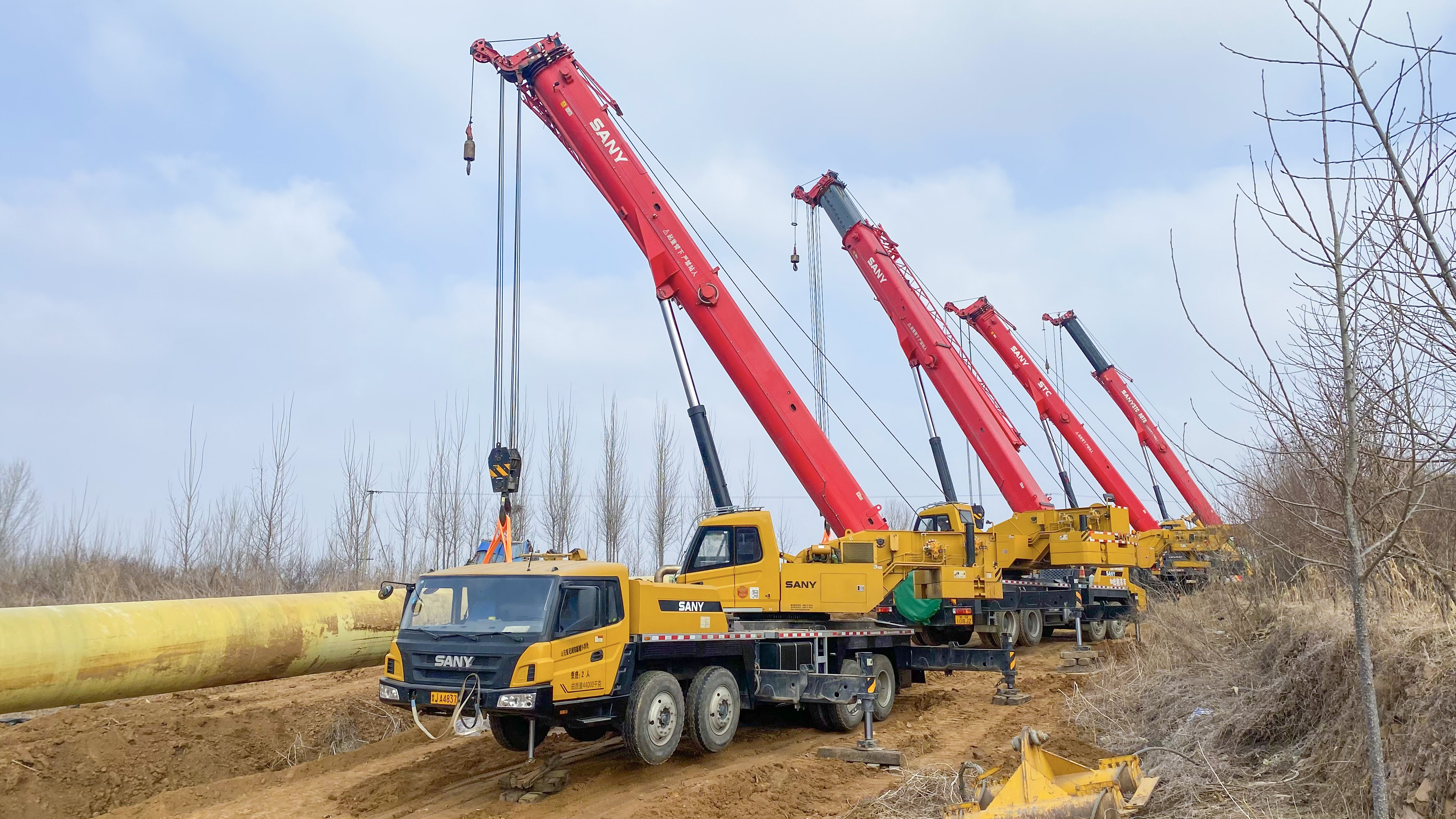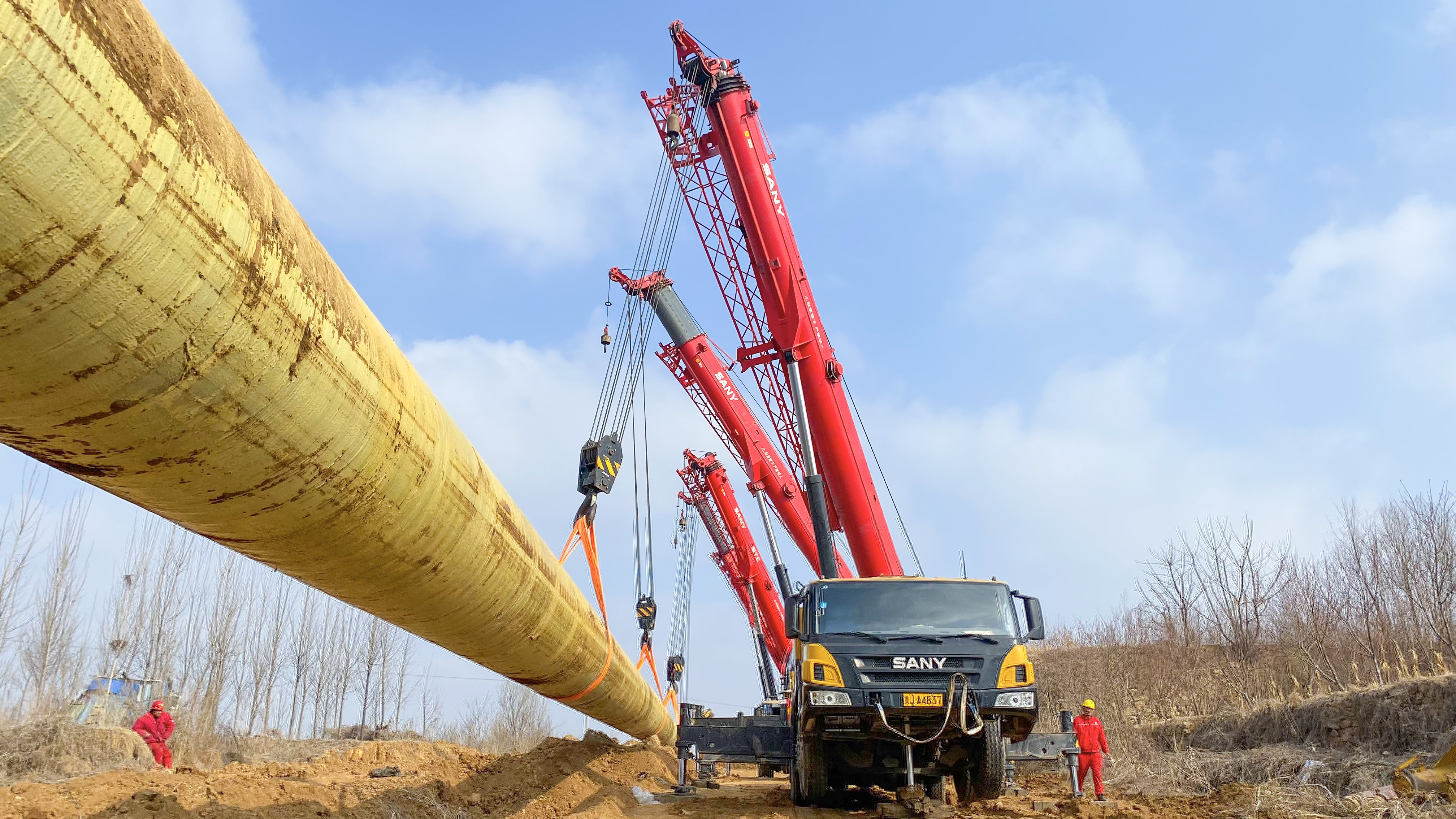 “年后,我们项目部就开始在当地找不同品牌、不同型号的起重机设备来进行吊载实验,要求回转性能十分稳定,经过比较,我们最后选择了四台80-100吨的好体育综合app下载起重机参与管线回拖施工。”辽河油建项目部董经理说道。