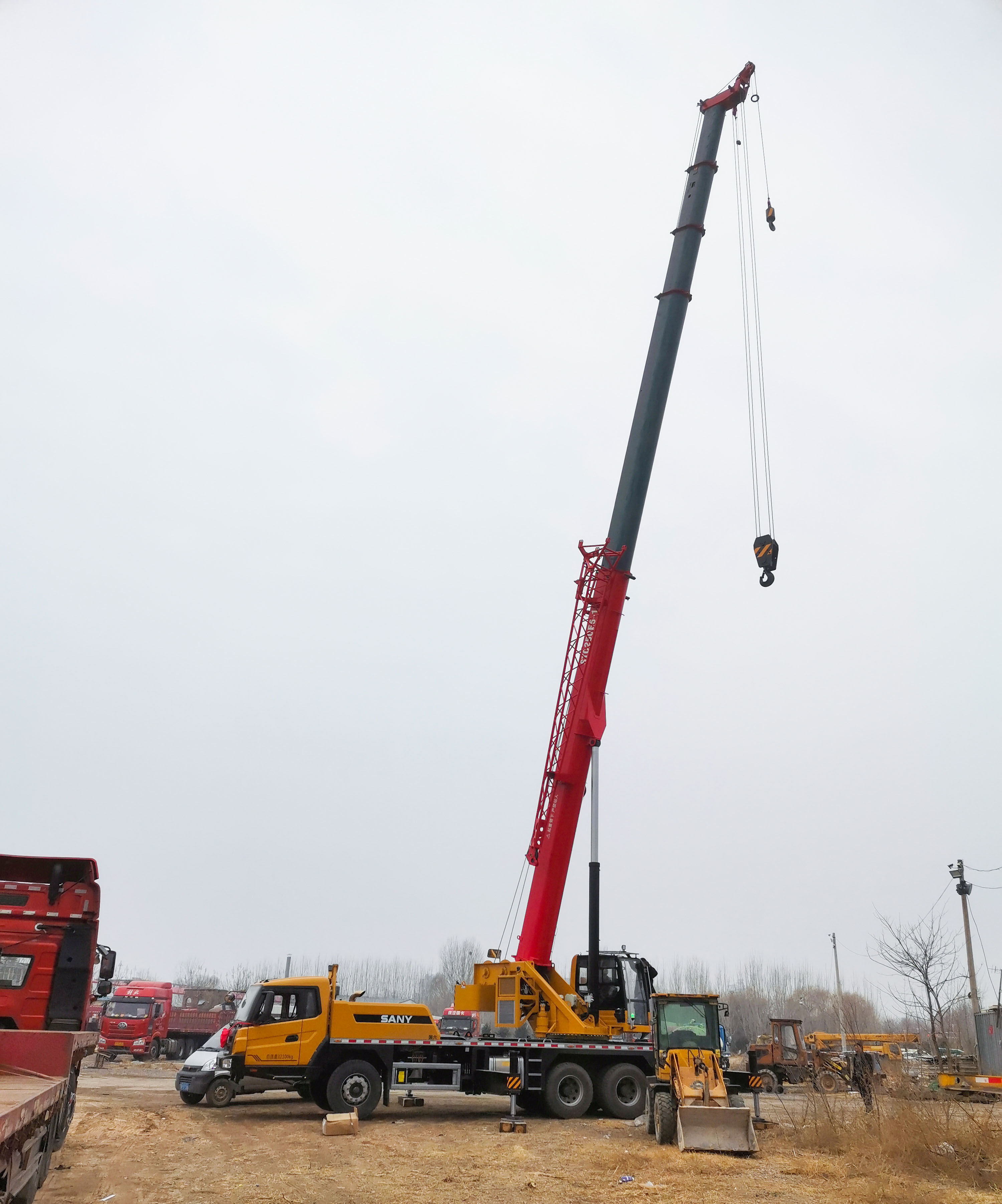 2022年初,山东聊城首台混动作业起重机抵达阳谷县。这台设备一到,就引来了当地吊友的围观。