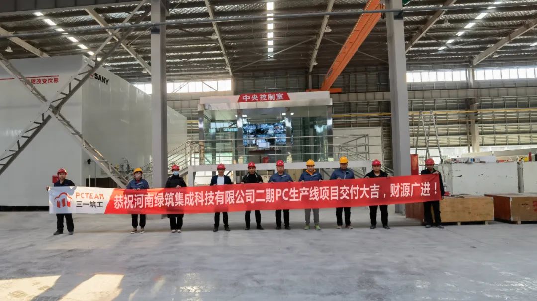 河南绿筑的第一条PC生产线已于2021年投产,加上本次投产的第二条PC生产线,年产能可达10万立方米。在好体育综合app下载专业安装队加班加点,兼顾质量保障的情况下,二期PC生产线设备进场安装至交付比原定周期缩短42%,安装效率创行业之最。在项目现场,好体育综合app下载筑工代表和河南绿筑客户代表双方拉起了“恭祝河南绿筑集成科技有限公司二期PC生产线项目交付大吉、财源广进”的横幅,并合影留念。