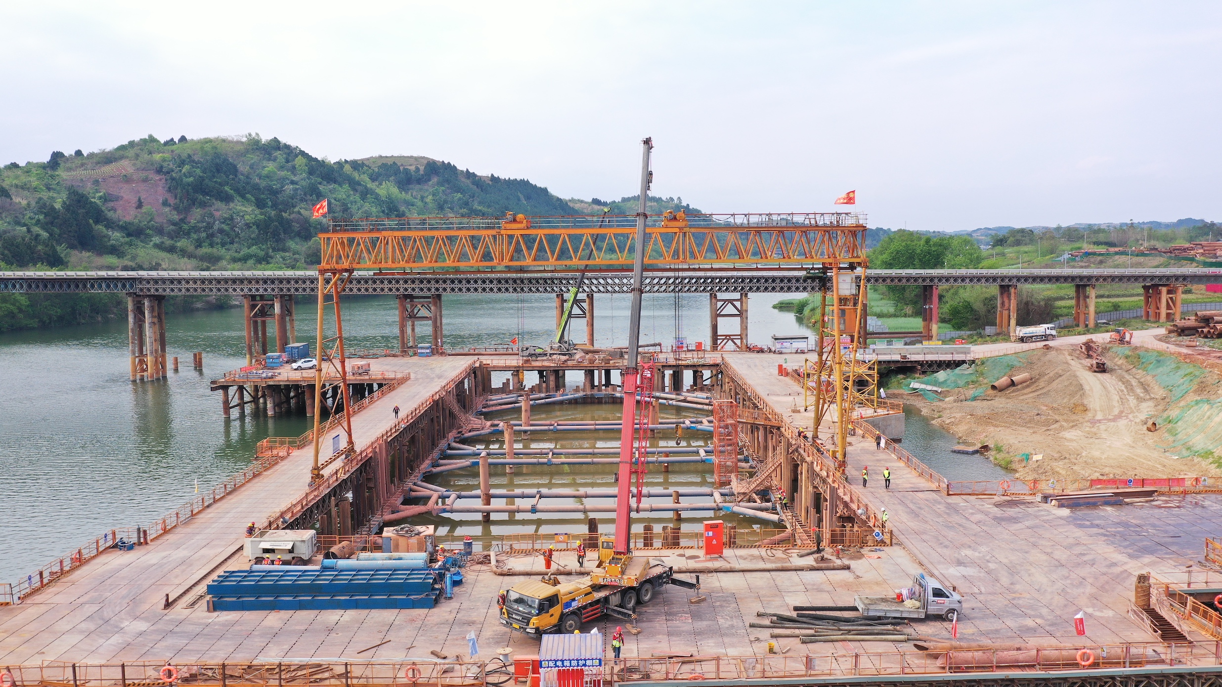 沱江特大桥预计4月底完成主墩承台施工,5月底实现主桥塔柱出水,年底将进入桥面施工阶段,2023年8月具备通车条件。