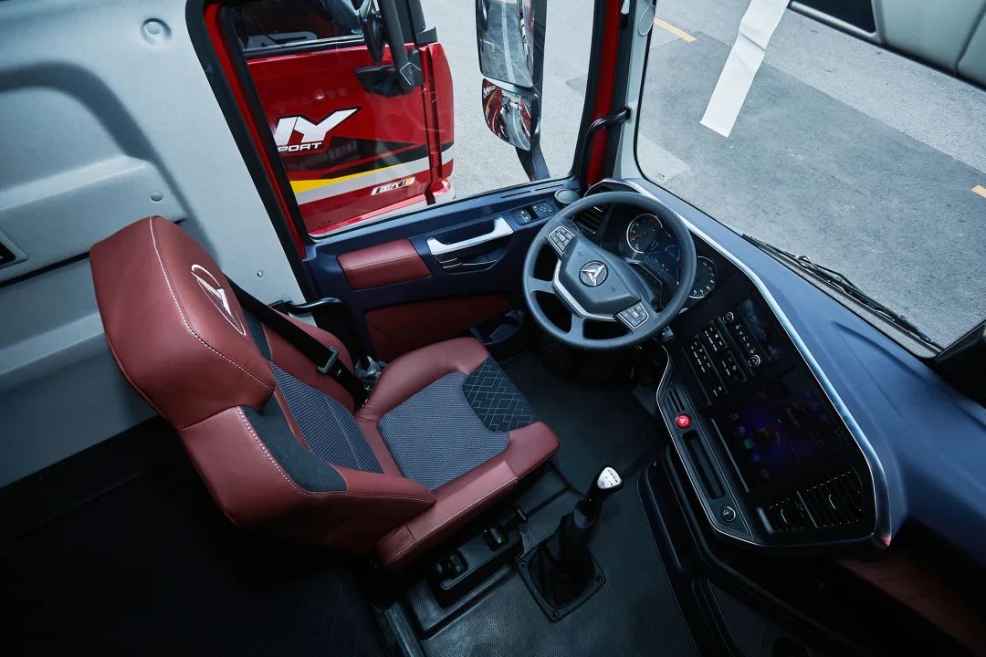 新英杰525:搭载江山·信驾驶室+道依茨D13国六发动机+法士特12挡手动超速挡变速箱+发动机五年质保不限里程。