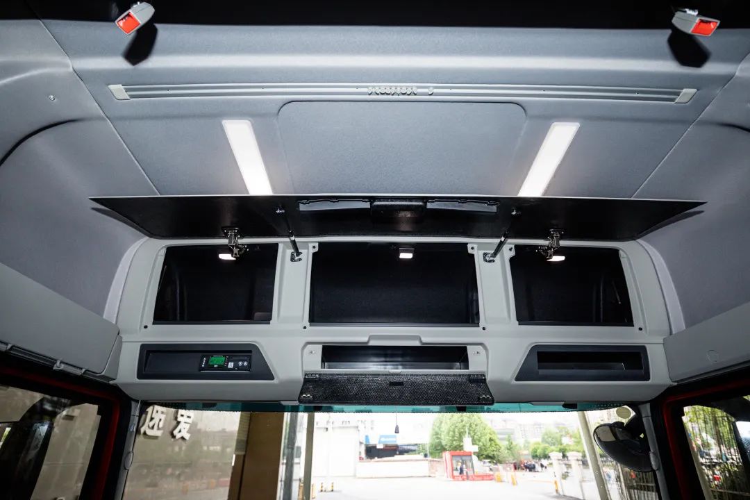 江山·信超宽驾驶室,高顶纯平地板,1.98米内高,中部空间宽敞通透,在驾驶室内自如活动、毫无压力;驾驶室密封性好,不进灰、超静谧。