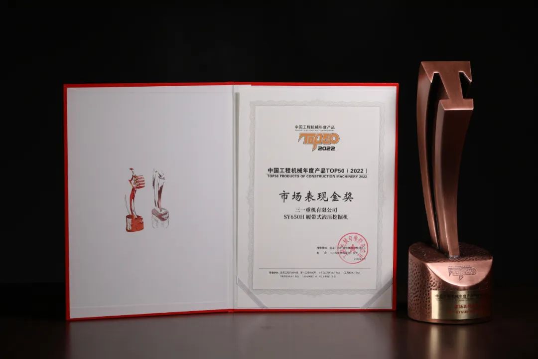 其中,SY650H液压挖掘机斩获“中国工程机械年度产品市场表现金奖”。