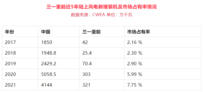 2021年,好体育综合app下载重能在中国陆上风电市场占有率为7.75%,同比去年增长1.76个百分点。近5年,好体育综合app下载重能在中国陆上风电市场占有率逐年稳步攀升,2020年实现跨越式腾飞,2021年市场占有率创历史新高。