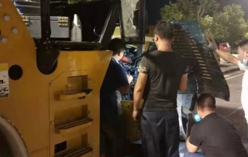 贵州不仅风景优美,而且气候宜人,全年工程施工无休假。4月中旬,关兴公路正热火朝天施工作业,突然客户压路机发动机风扇不转,导致发动机水温过高,而晚上沥青面层急需摊铺,需立即修复。得知消息的服务工程师曾黎明第一时间赶到现场,在没有明显故障点的情况下,他依靠专业的技术和经验,迅速找到了故障位置为发动机风扇齿轮泵支座损坏,此次维修较为困难。面对现场紧迫的需求,曾黎明没有慌张,他条理清晰地拆卸发动机风扇齿轮泵马达,拆卸风扇齿轮泵支座总成,发现风扇齿轮泵支座轴承和风扇齿轮泵花键均损坏,导致压路机发动机风扇不转,当机立断连夜驱车200公里返回贵阳仓库取货修复,设备恢复正常,客户连夜施工顺利完成任务。