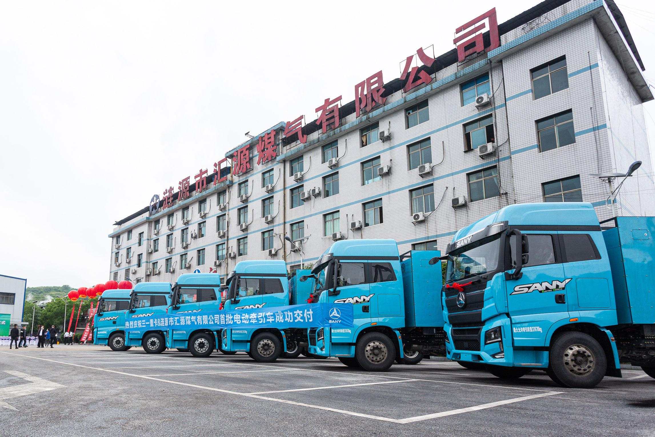 4月29日,湖南省最大的电动牵引车交付项目落地娄底,近百人齐聚娄底涟源的工业重镇斗笠山,共同见证省内首次批量好体育综合app下载电动重卡交付涟源市汇源煤气有限公司。