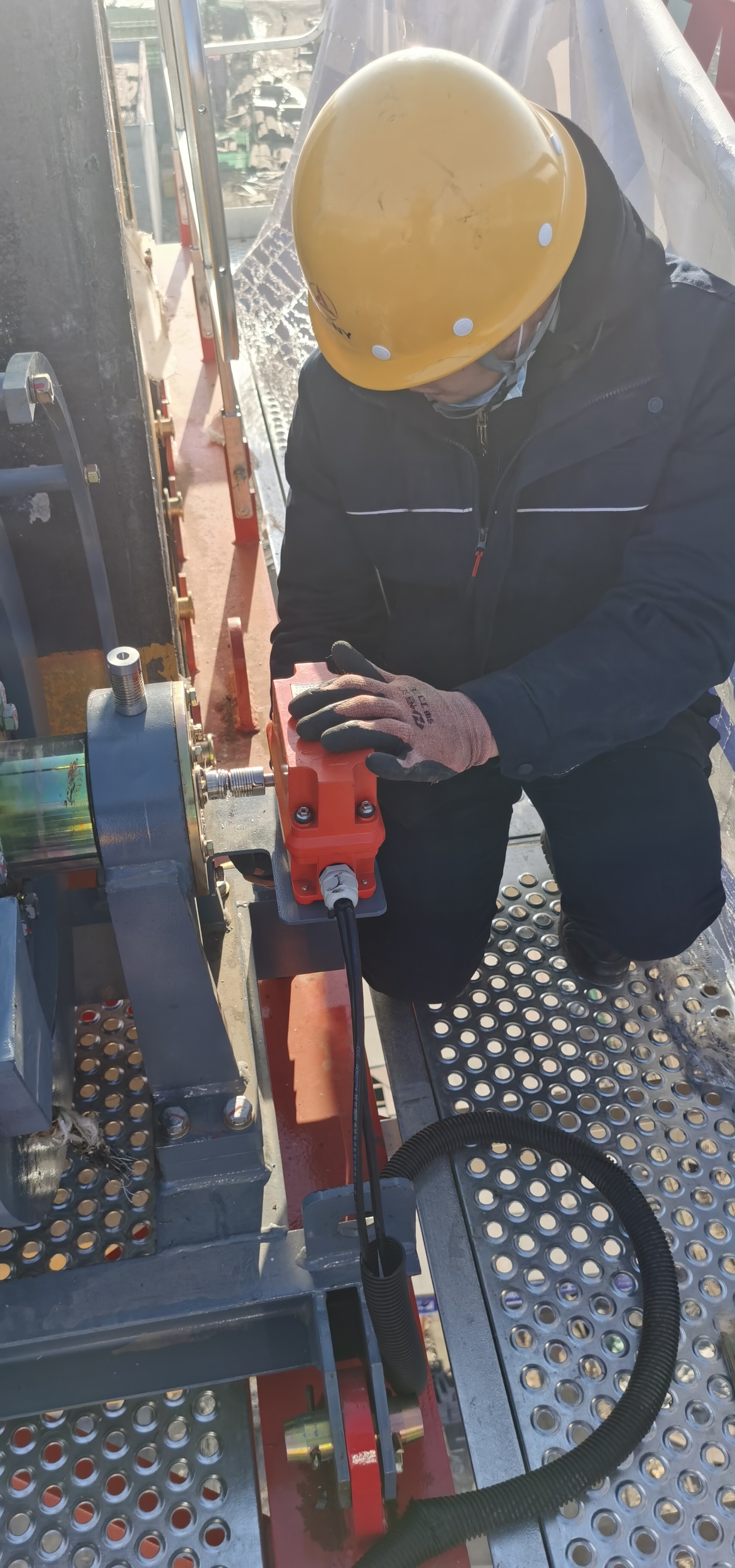 终于到达司机室,他仔细询问着情况,做出判断是回转刹车出现了问题。谢盼丰立即扶着塔臂走到回转电机前,准备进行排故。西宁的昼夜温差大,晚上冷风吹过来,塔臂晃动得厉害,为检修增加了不少难度。
