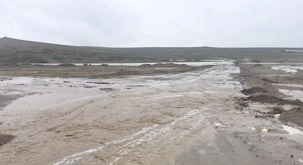 原本准备吊第四节塔筒,但当天下起了大雨,草原土质松软,去风场的路被冲断了,人过不去。为了不耽误工期,我们的服务工程师支磊自发搬石头填路,步行两三公里,最终抵达了风场。