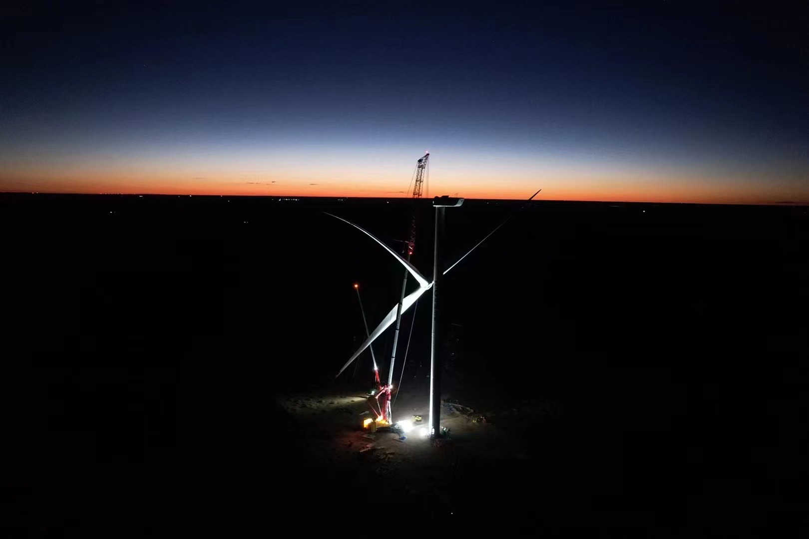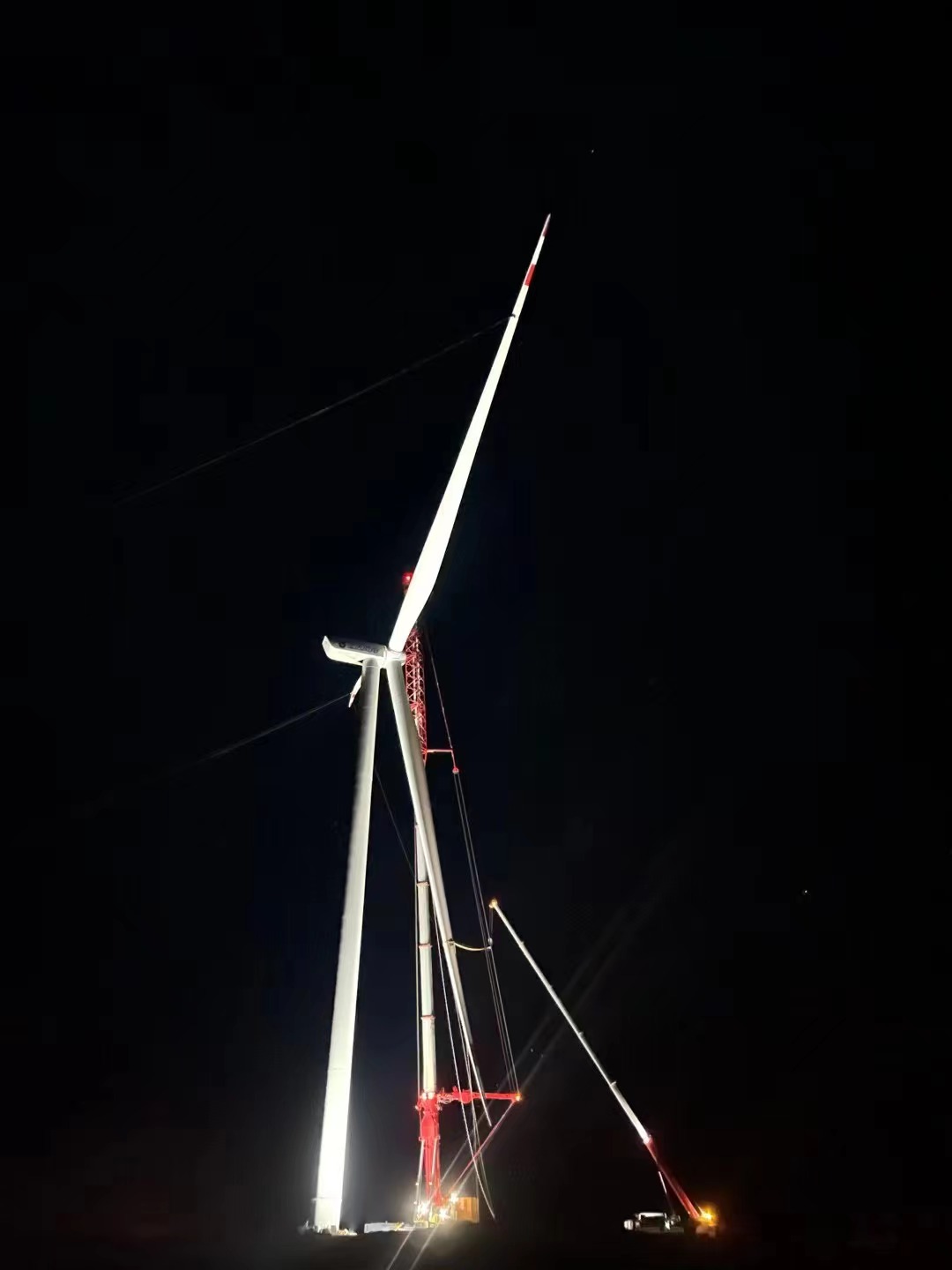 无奈连刮了三天大风,一直到晚上8点风才小些。好不容易等到了空窗期,SAC24000T一把擎起整体叶轮,9点的时候成功和机舱精准对接,这个工位的6.25MW圆满安装完毕。对讲机里传来的“好”,让人非常兴奋。