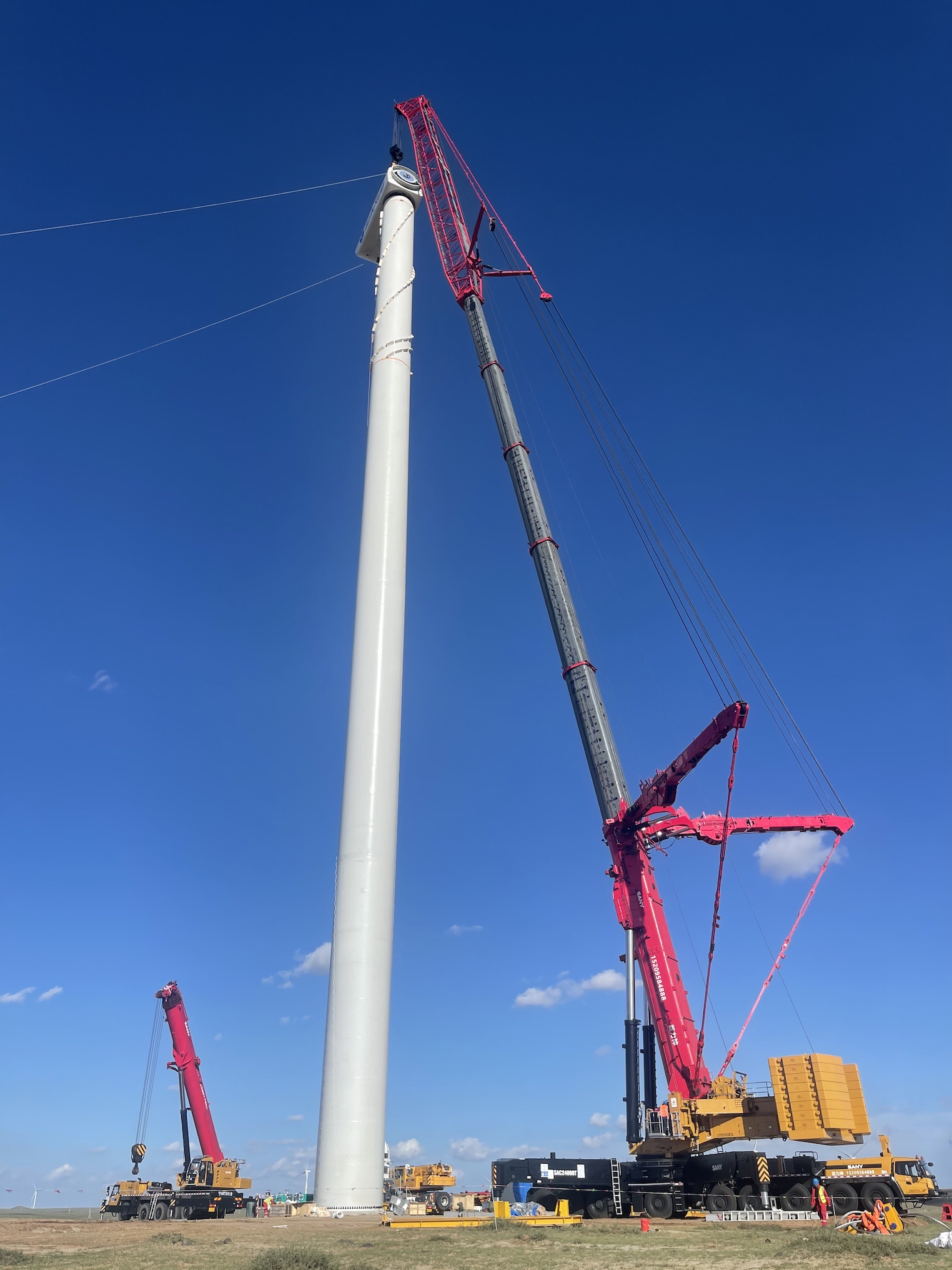 SAC24000T抵达风场,下午开始组装支腿和转台、变幅油缸、基本臂,4个小时就完成了。