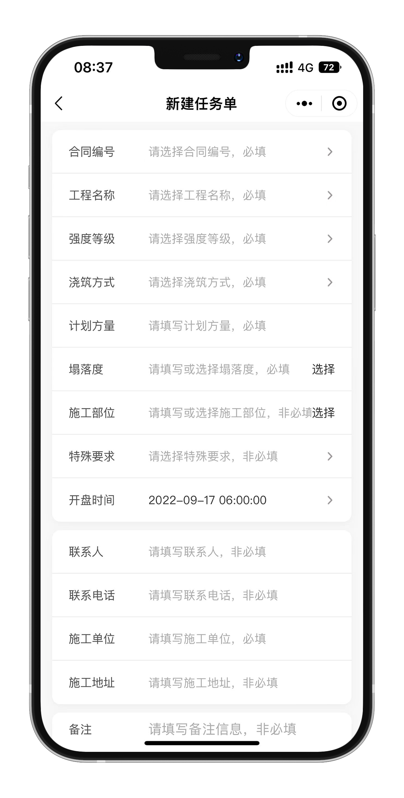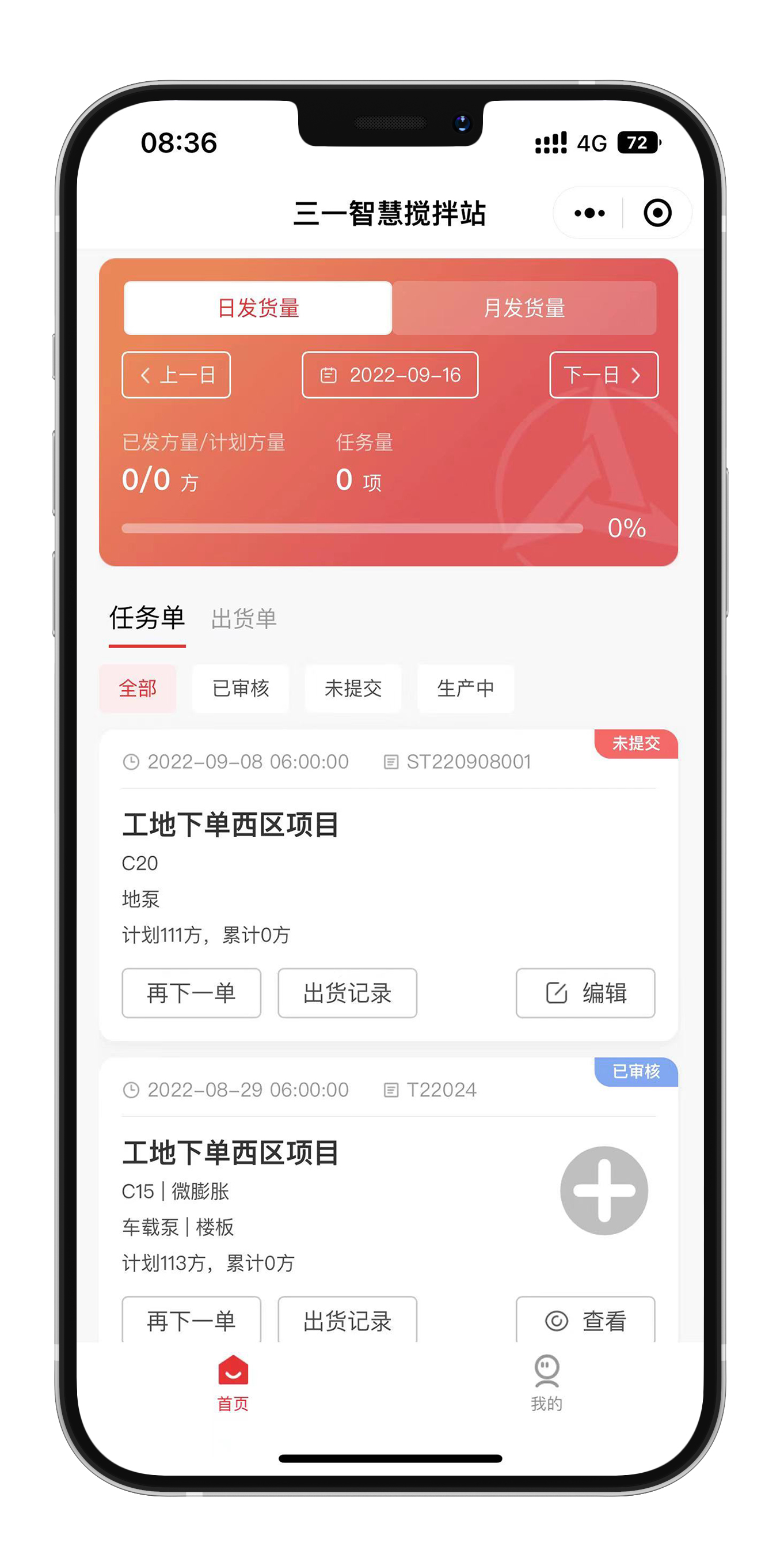 “工”是指工地移动端。工地客户使用工地移动端可以直接下达订单,通知搅拌站按订单要求生产,查看运输车辆的位置信息, 实时掌握任务单的运输情况。通过使用工地移动端,工地客户不再是信息化管理上缺失的一环,而是成为了生产流程的启动点。