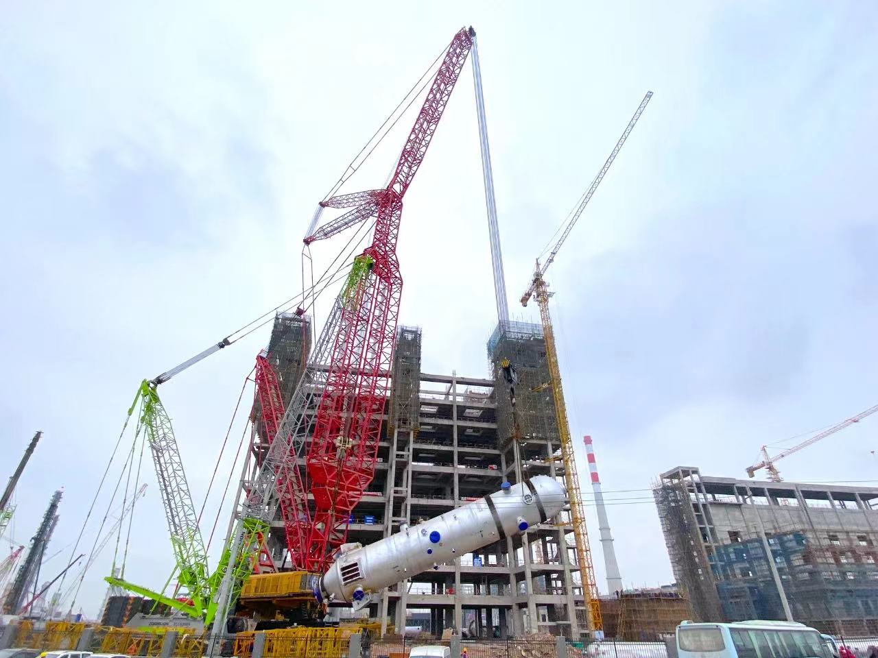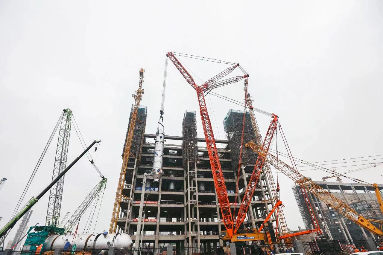 11月11日至27日,中国化学工程第十三建设有限公司采用的好体育综合app下载SCC20000A履带起重机在荆州完成某项目核心设备气化炉三连吊。