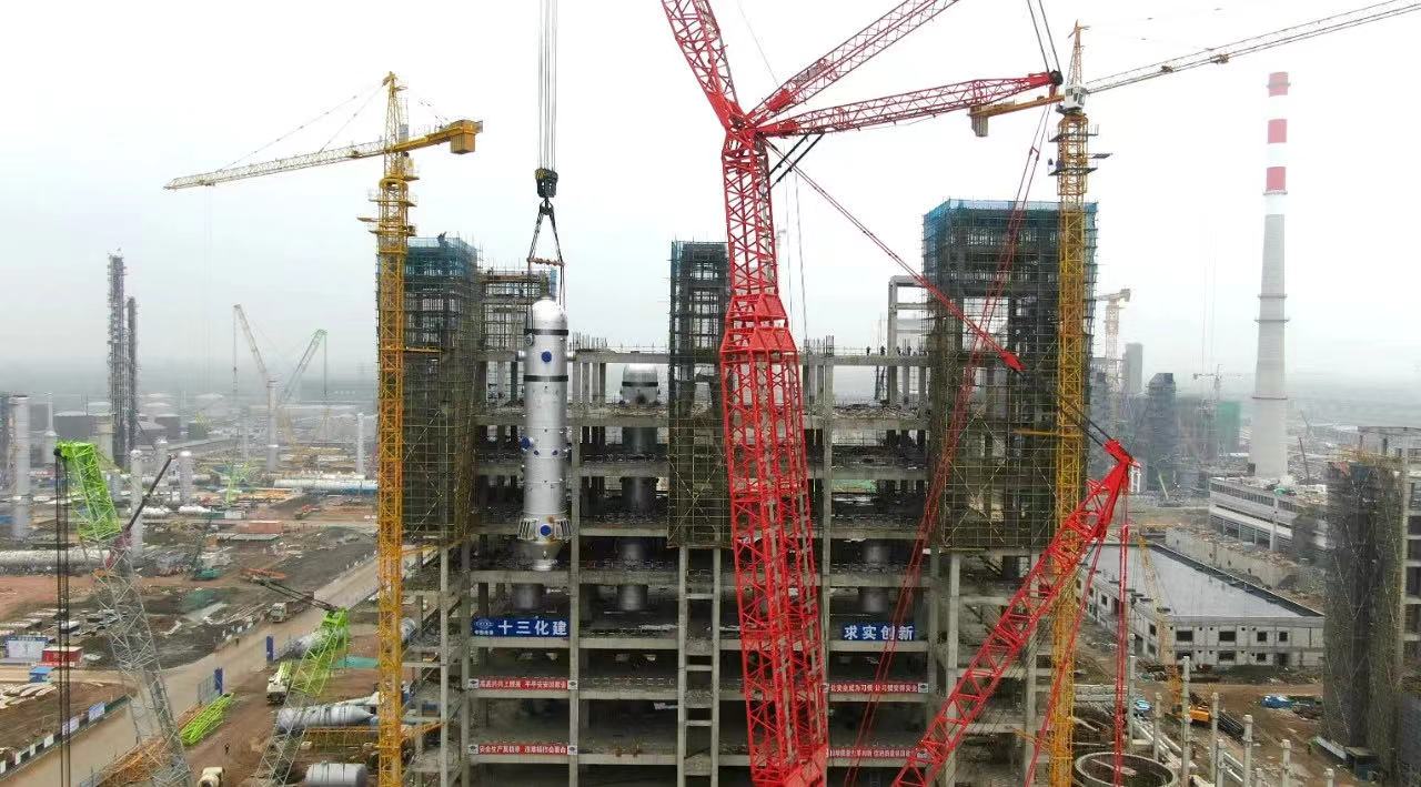据了解,该项目共有四台气化炉,单台设备净重415吨,直径4.24米,高27.45米,截止至目前,已成功完成了前三台设备的吊装作业。