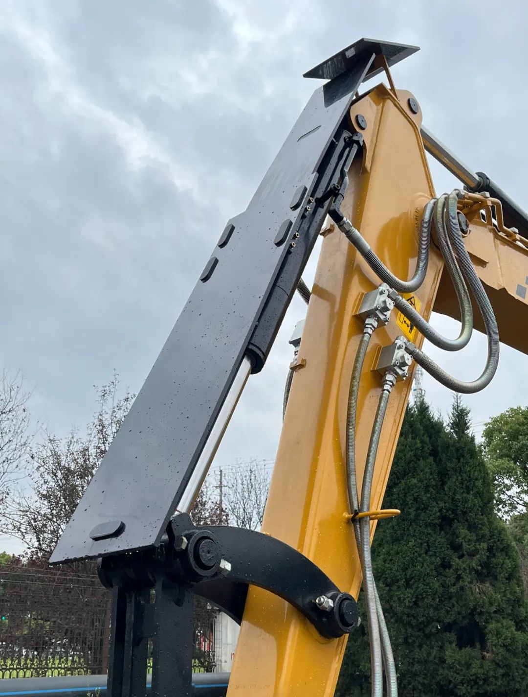 高压电防护:斗杆上方安装绝缘尼龙材质的高压电防护板,防止高压电垂直引流,作业更放心。