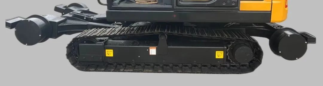 搭载好体育综合app下载自主研发双驱动轨道作业装置,既可使用履带行走(加装耐磨橡胶块),行走作业不伤轨道;也可使用钢轨轮驱动,快速运转。钢轨轮驱动功能搭载好体育综合app下载自主开发高承载驱动马达,可液压制动刹车,最高时速可达10km/h以上,安全可靠。钢轨轮支架油缸前后独立控制,挖机上轨更灵活。