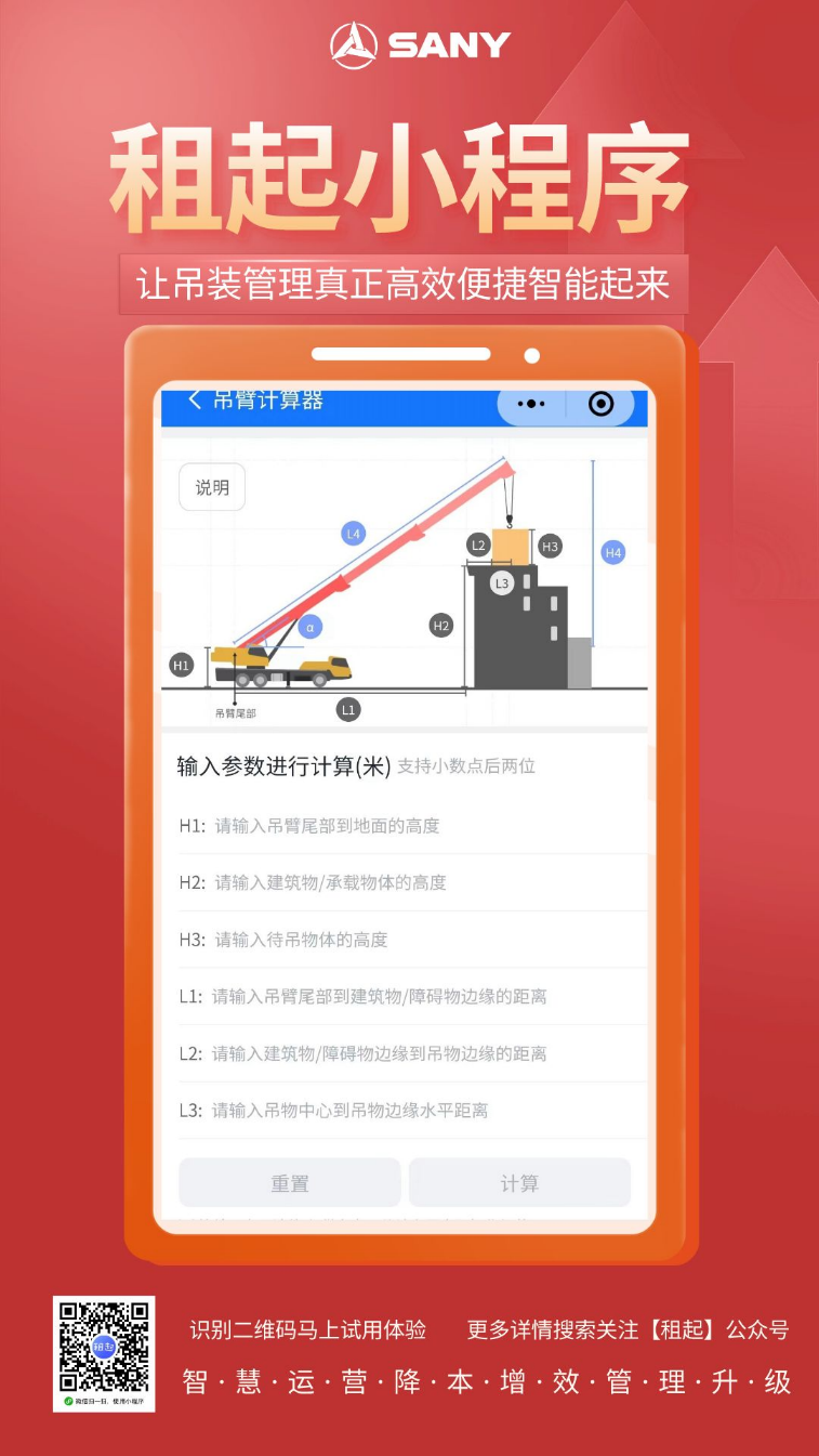 ◼︎ 吊臂计算器:一键计算臂长,匹配最优工况