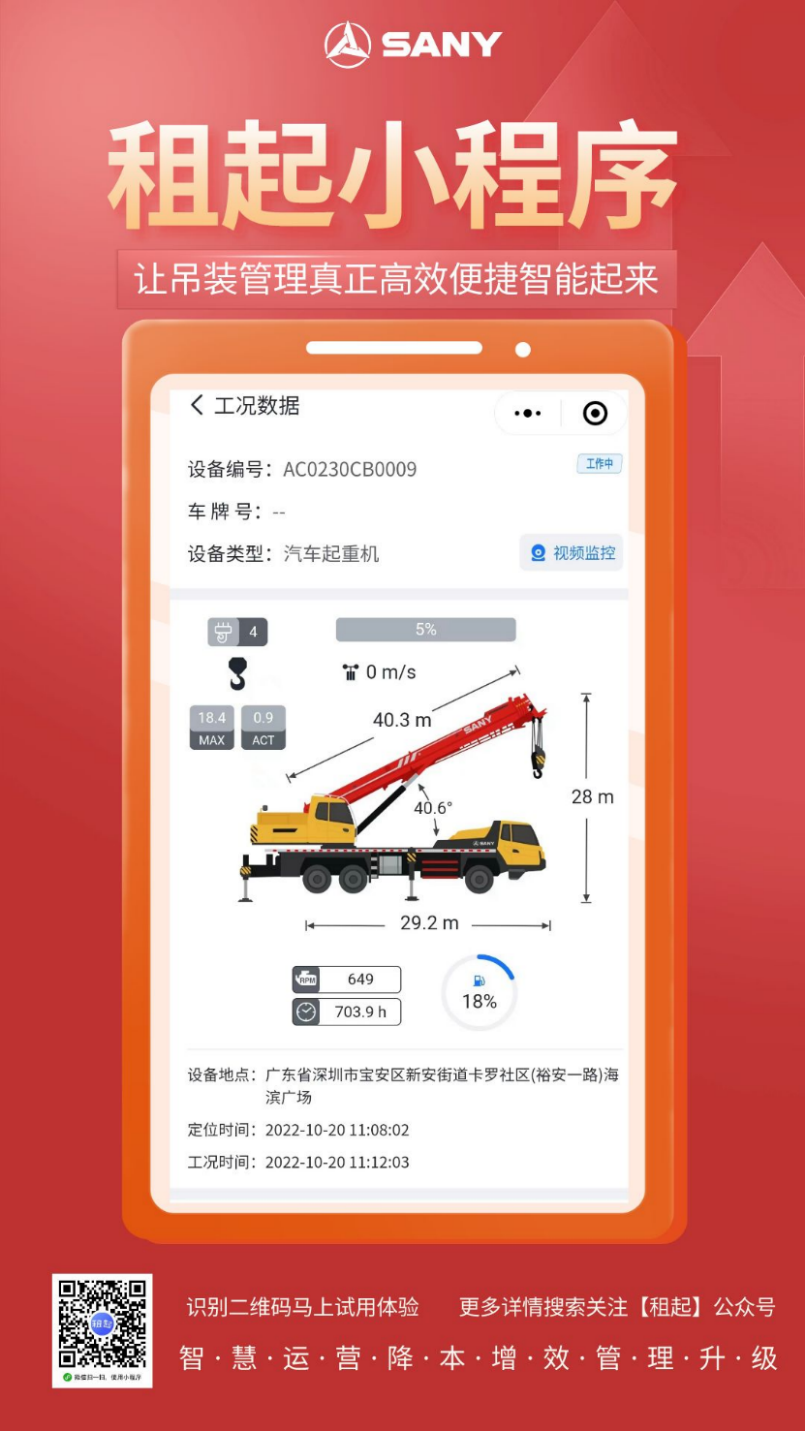 2020年,智慧运营系统横空出世。该系统为吊装作业提供了一体化智能解决方案,赋能吊装企业利用数据服务业务,达到安全管控升级和降本增效的目的。“租起”平台便是其中重要的软件组成部分。