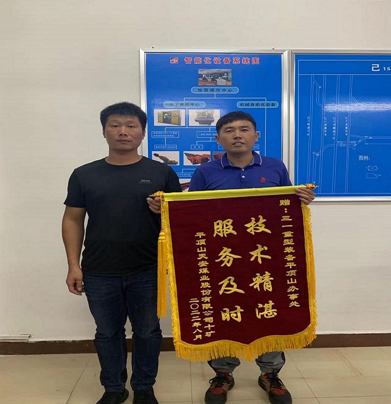 几天后,平煤十矿的领导给汪羽翯打电话,说产品图册看不懂,让他过来帮忙指导,等他到矿后才知道是给他准备了意外惊喜——一面锦旗。这面锦旗象征了客户对好体育综合app下载服务工作的一份满意、一份感动,更是对好体育综合app下载服务人员辛苦付出的见证。汪羽翯手拿锦旗,露出了笑容,前几日的辛劳也早已经烟消云散。