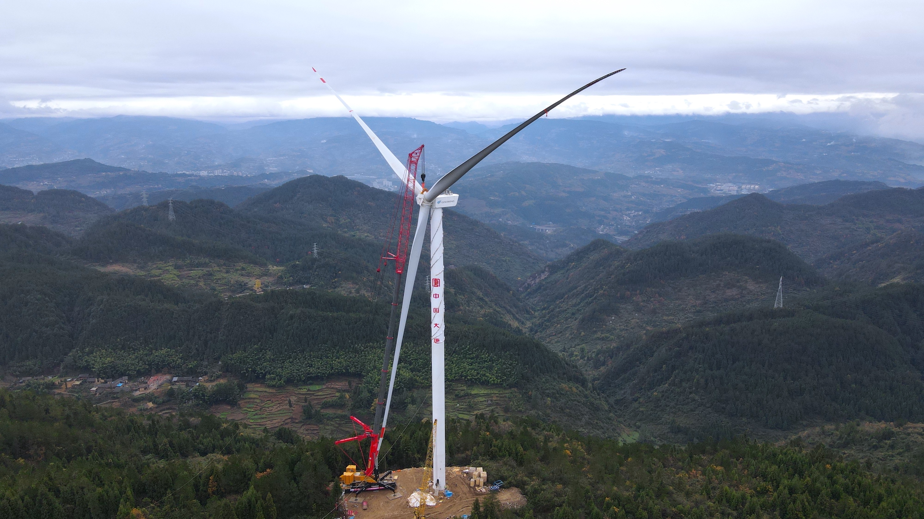 由中国大唐集团重庆分公司开发建设的丰都莲花山风电场,位于重庆市丰都县境内的方斗山上,场内山体高程在1050m-1433m之间,场址面积约20km²。这个风电场设计安装10台金风5.0MW风力发电机组,年上网发电量为10081万kW.h。