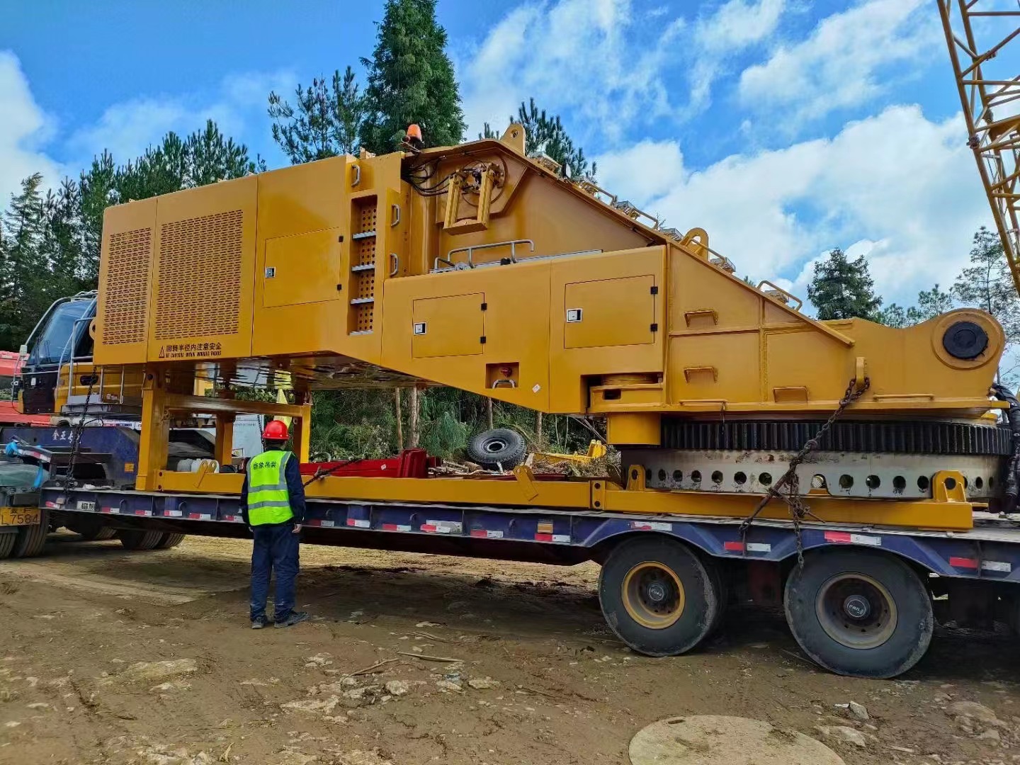冬季的风场天气多变,且山地道路崎岖。为提高施工效率,这台2400吨以全臂全腿284吨的状态开始重载转场。转场路段全长4.3km,道路最大宽度4.5m,坡度15°。面对狭窄陡峭的山路,SAC24000T发挥稳定,顺利到达了下一个机位。