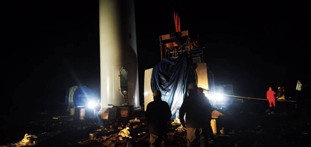 开始组装叶片和轮毂,但由于连续多日降雨和大雾,叶片运输进度极慢,这让守在现场的人都十分心焦。