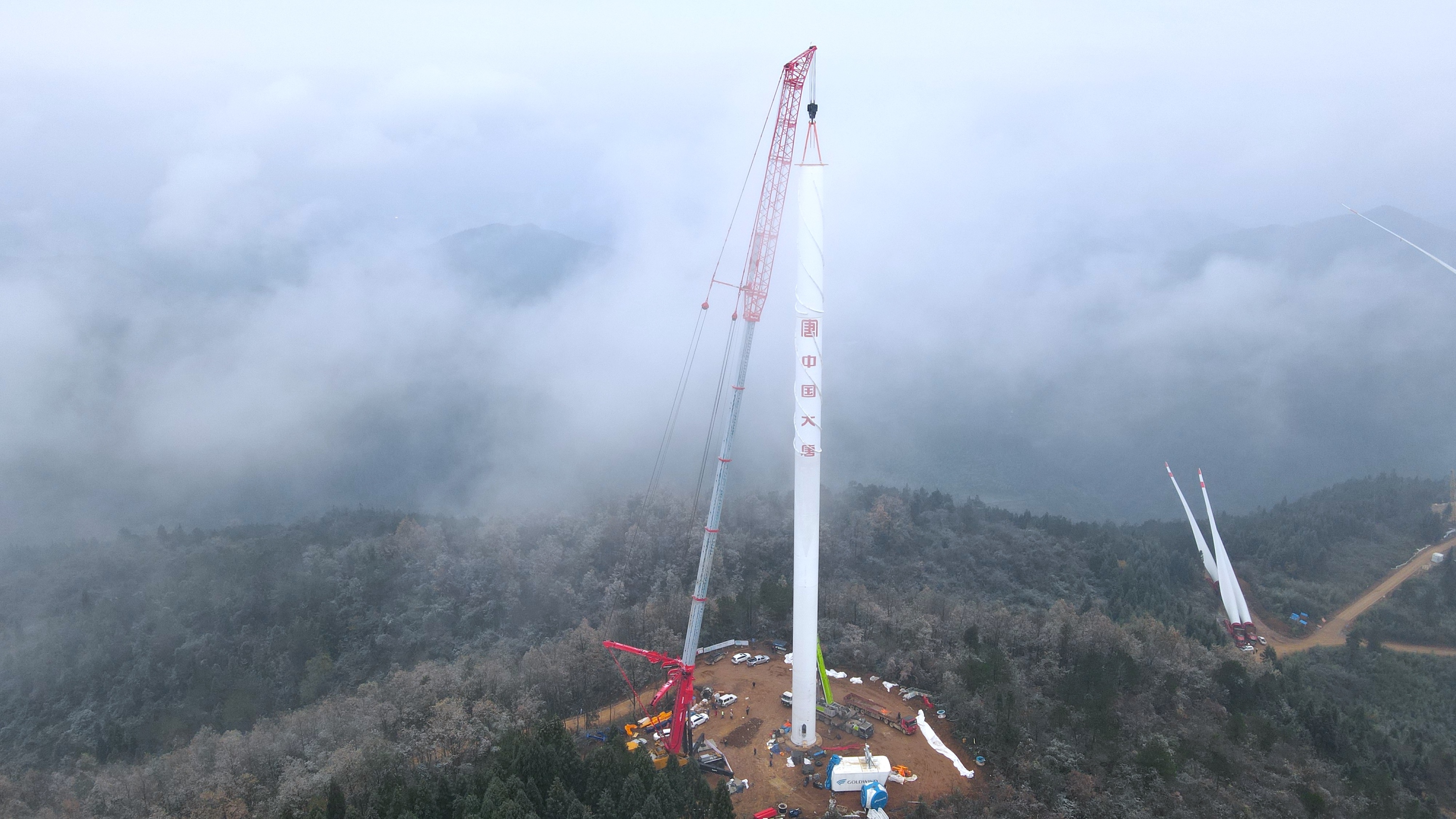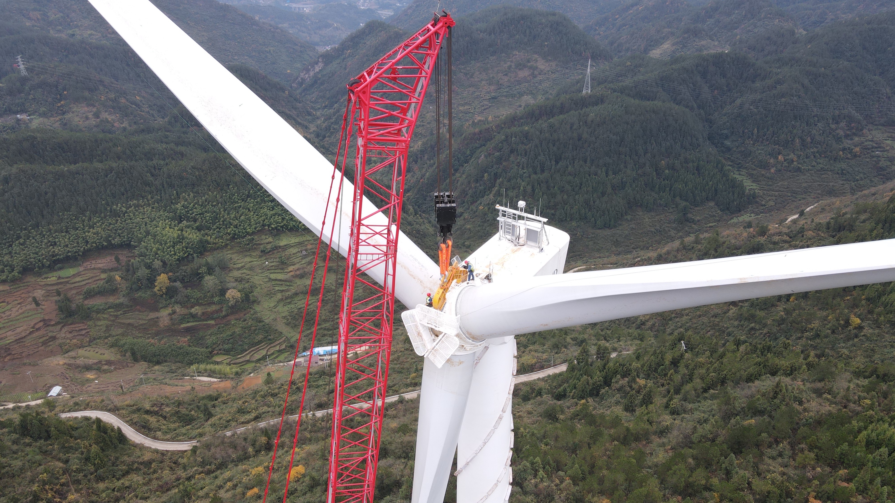 耗时9天,长92m、重24t的三张叶片终于和轮毂完成组装。
