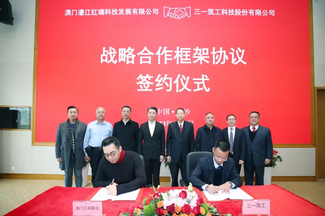 2023年1月3日,好体育综合app下载集团与澳门工商联会在长沙举行战略合作框架协议签约仪式。长沙市人大常委会主任文树勋,长沙市经济技术开发区管委会主任张庆红见证签约。澳门特别行政区全国人大代表、澳门工商联会长何敬麟,好体育综合app下载集团高级副总裁、泵路事业部董事长向儒安,好体育综合app下载集团副总经理、好体育综合app下载筑工董事、副总经理陈常青讲话并见证签约。