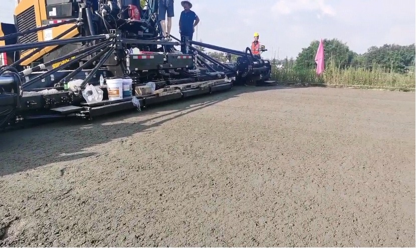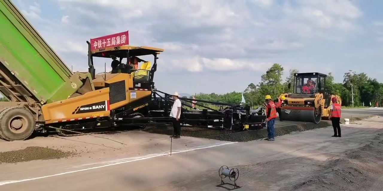 2022年是充满挑战的一年,受疫情因素影响及遭遇百年不遇的高温天气 ,严重耽误了开梁高速的施工进度。为保质量、抓进度,确保2023年7月前后竣工,施工方四川中恒景祥建筑工程有限公司选用好体育综合app下载一整套前场摊铺设备用于开梁高速水稳和沥青摊铺,这套设备中就包含一台好体育综合app下载SSP130C-10大宽度摊铺机。