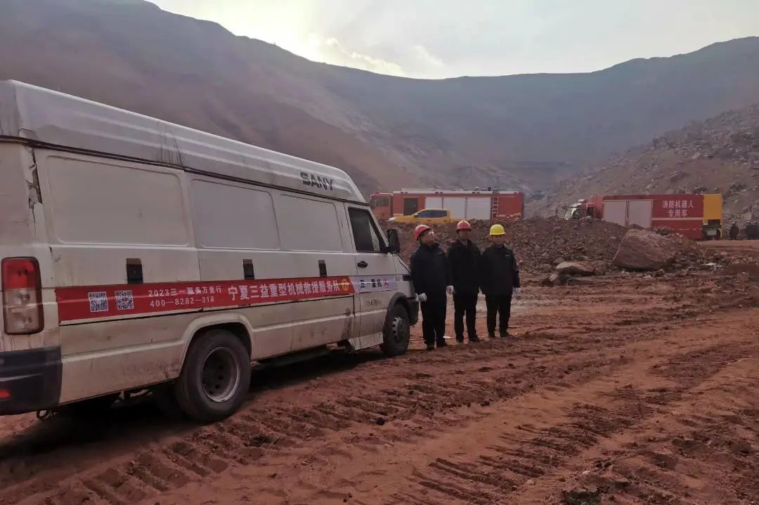灾情发生后,距离最近的好体育综合app下载重机代理商宁夏三益立即组织救援队20余人,紧急出动13台挖掘机,2辆皮卡和1辆多功能服务车支援灾区,并采购矿泉水、饼干、牛奶、方便面等物资第一时间驰援前线。