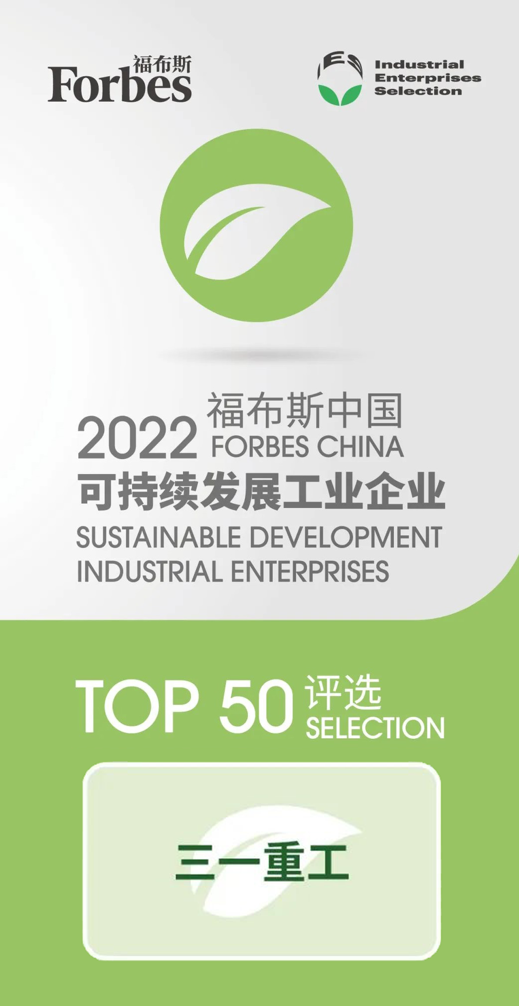 近日,福布斯中国发布“2022可持续发展工业企业TOP50”,好体育综合app下载重工榜上有名,被评为年度可持续发展工业企业的行业标杆。