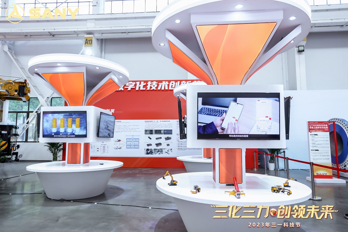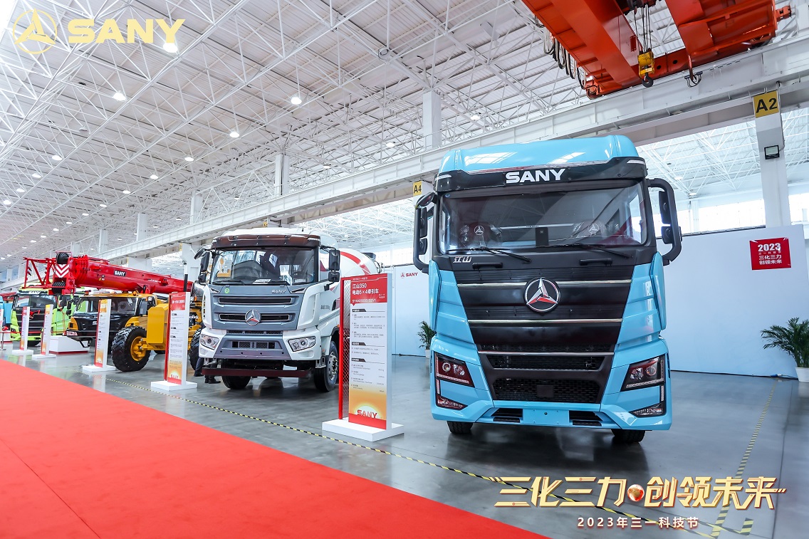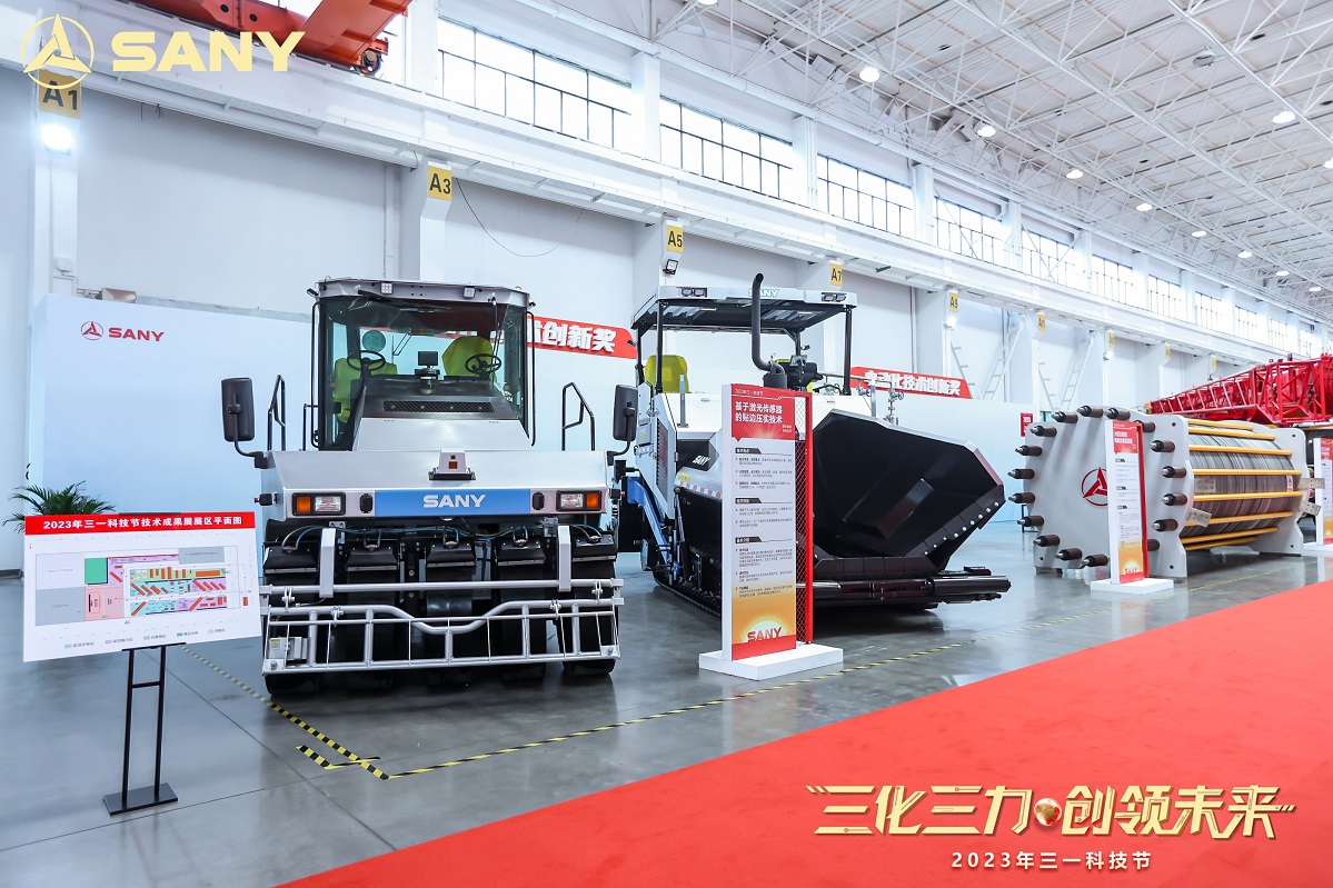 现场,SYM5465THBF 620S泵车、410电动搅拌车、SKT105S系列宽体车等核心产品一一亮相;纯电起重机能量管理技术、基于AR应用的数字孪生技术研究、基于极简结构的电控阀能效控制技术等关键技术依次呈现,全新高端车用驾驶室(328系列)、SY485大挖油缸开发、全国产化控制器等优秀零部件揭开面纱,电动化、数字化、智能化等创新技术更是“十八般武艺”大显身手,精彩纷呈......
