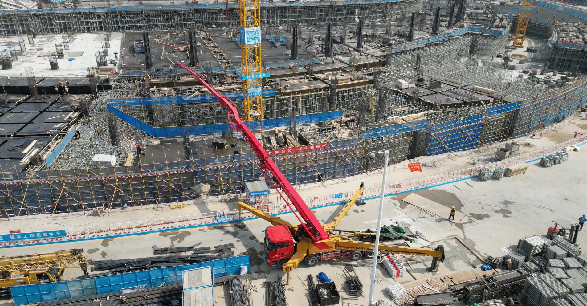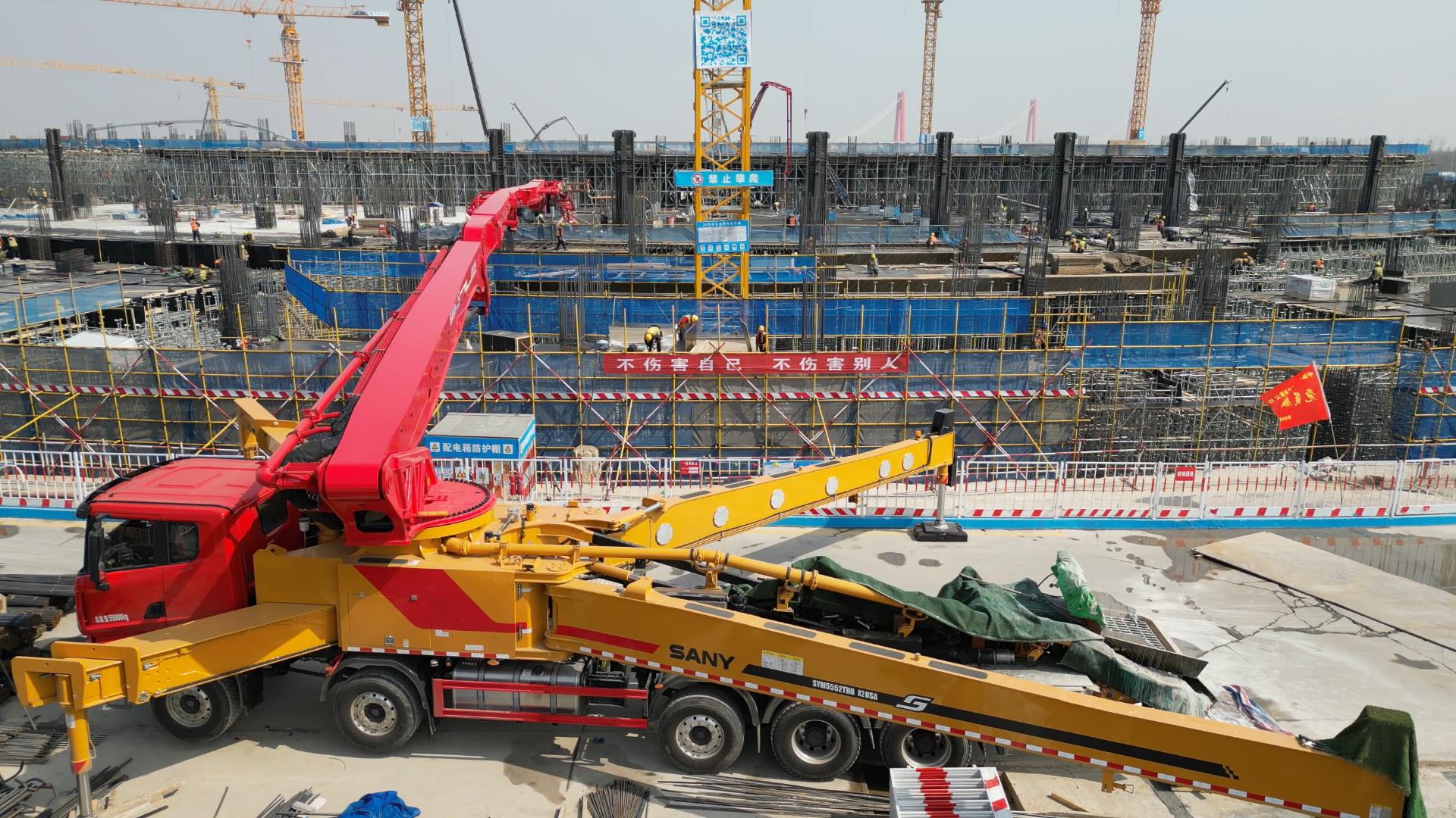 为了确保工期的顺利推进,济南铸砼又引进了一台好体育综合app下载S系列长臂架泵车参与施工。有“泵送战神”之称的好体育综合app下载S系列长臂架泵车有着极高的泵送效率、极佳的场地适应性、高层布料范围更广、油耗更低、精度更高、臂架更灵活、性能更稳定。好体育综合app下载S系列长臂架泵车的加入使施工方如虎添翼,极大地提升了项目建设的进度。