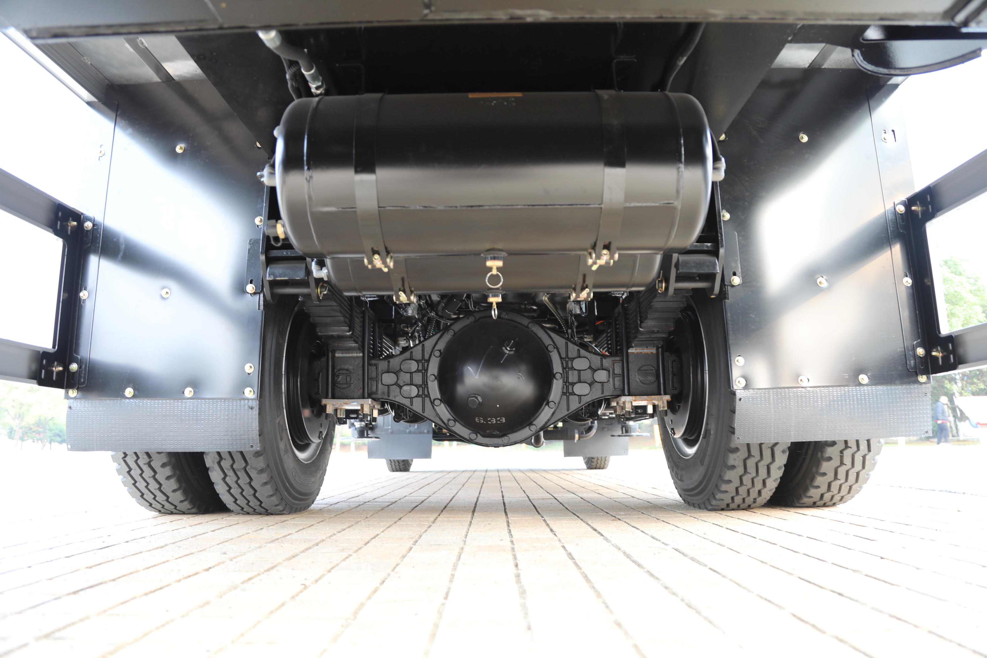 它轴距4.4m,极限45度转向角,最小转弯半径8m,通道圆半径8.8m,通过性没得说。车高3.23m,涵洞、厂房、限高杆无需绕路,畅通无阻,不仅节约时间,还节约油耗。