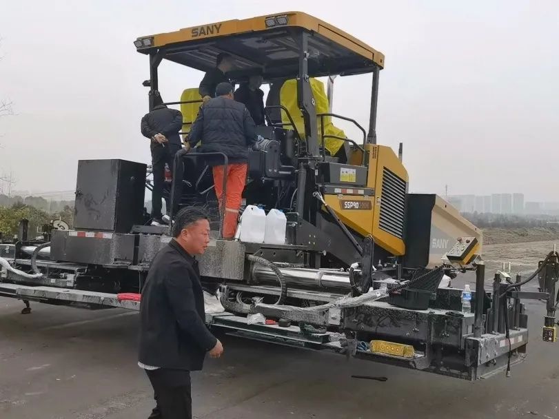扬州迎来第六台好体育综合app下载C10系列SSP90C-10摊铺机,交付即施工,负责水稳层摊铺,操作手及施工方经理夸赞道:“好体育综合app下载C10系列9米王牌摊铺机性能优越,转场速度快,不耽误施工!”
