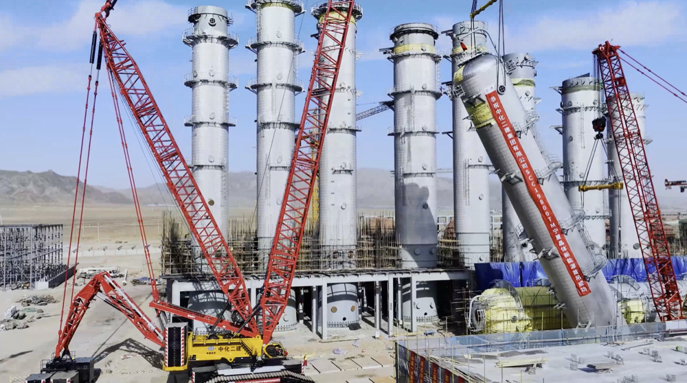 中化二建集团大型机械施工有限公司技术负责人郭克全介绍:“宁能多晶硅项目是全国单体最大的多晶硅项目,总投资1500亿,精馏装置的重量也大于全国同行业的设备,整体重量500多吨。”