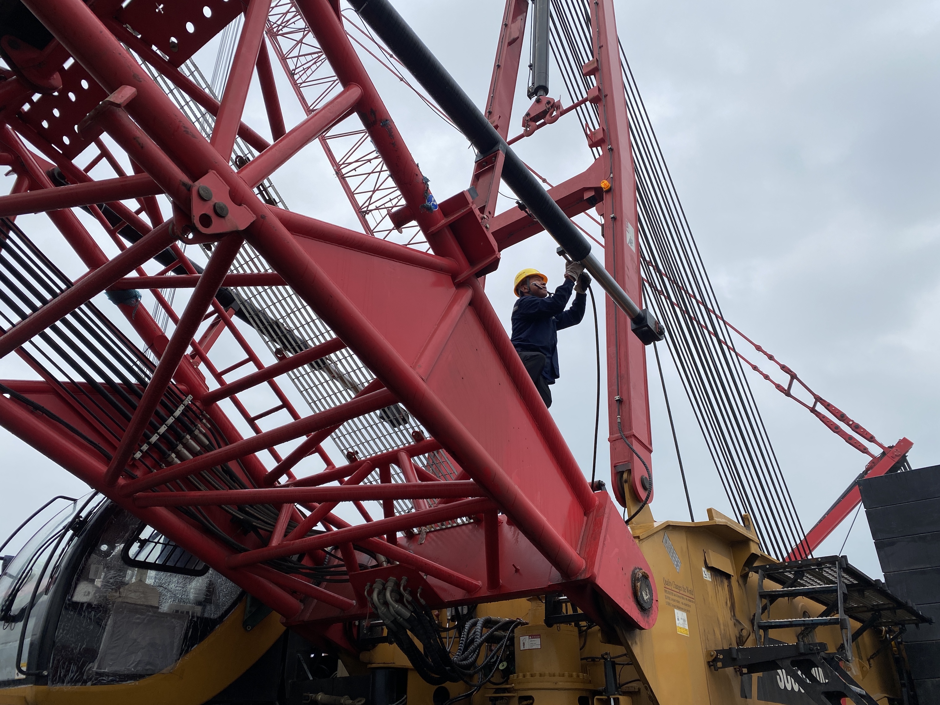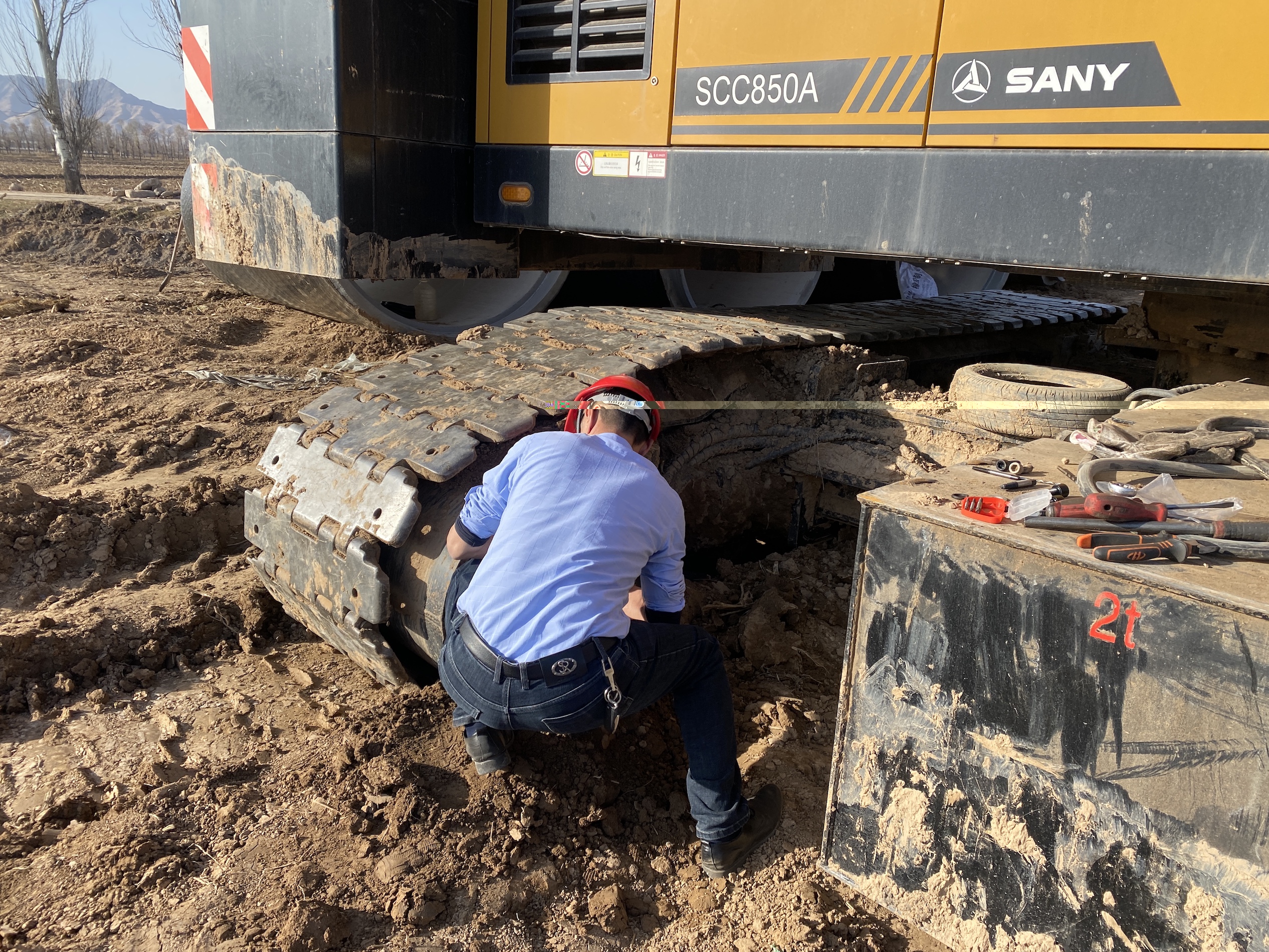 这不,在4月普通的一天,入春后天气渐暖,时亚晶和张建海刚维修完一台设备从工地上返程。夕阳西下,他们路过忻州定襄时,无意中看到有一台好体育综合app下载的履带起重机正在吊装管道。两个人没有说话,默契对视,停下车,走进了工地。
