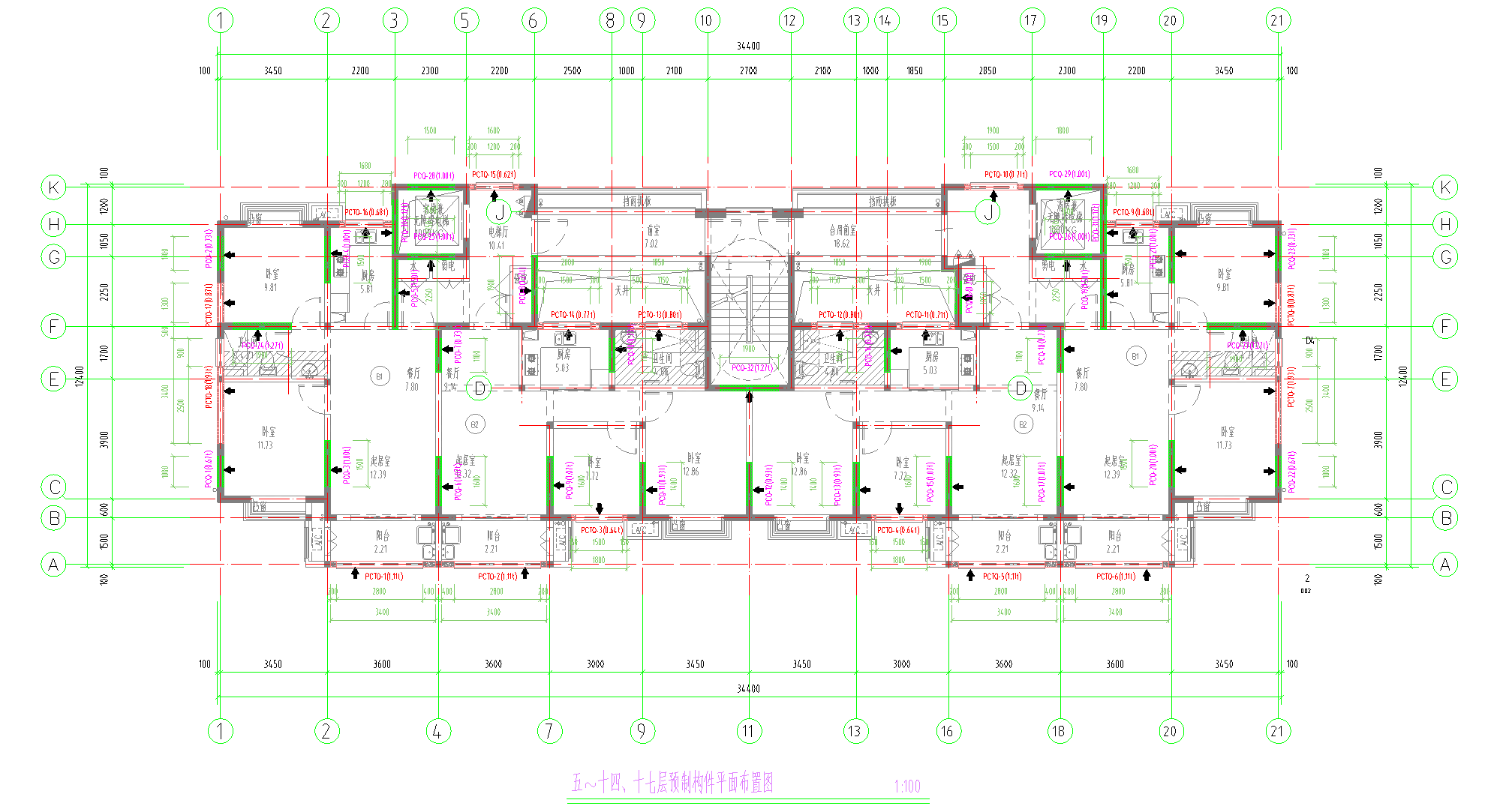 项目共12栋单体,地上17层地下1层,2-12#楼住宅皆采用SPCS体系,抗震设防烈度7度,0.1g,构件类型有SPCS空腔墙、楼梯等。