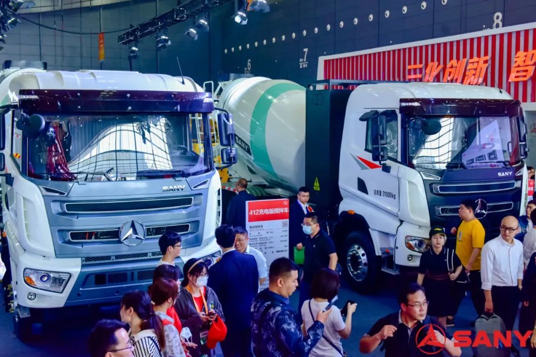 深受市场青睐的408、412电动搅拌车整齐列队,气势如虹。当前,好体育综合app下载电动搅拌车已连续两年市占率在50%以上,稳居行业第一。