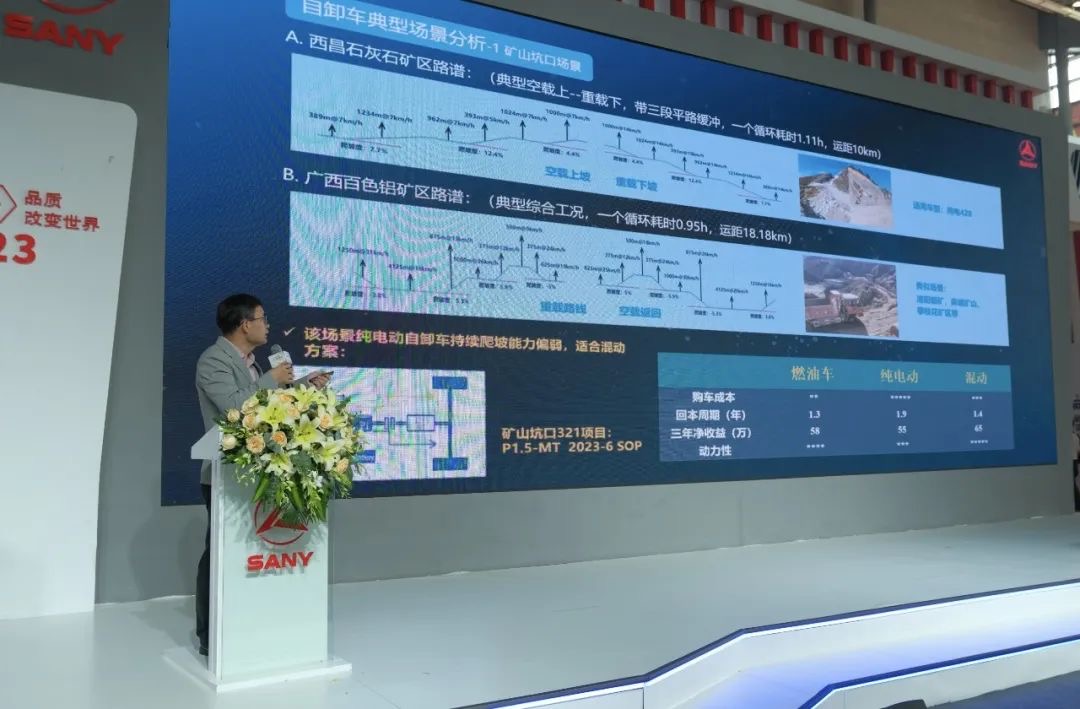 在本次展会上,工程车辆事业部还举办了混动技术发布会,向参观者介绍了混合动力工程车的合理性和必然性发展趋势。