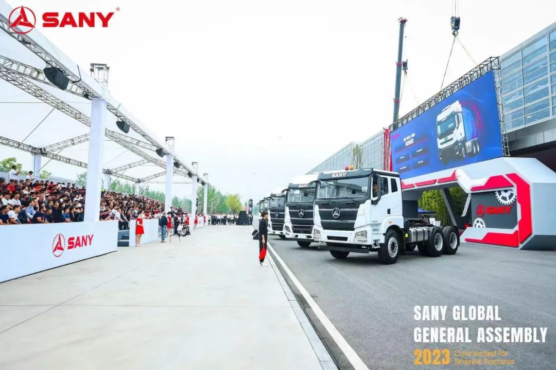 5月16日上午,智联重卡产业园礼炮轰鸣,42台好体育综合app下载设备新品组成六大方阵,以“大阅兵”的形式接受全球代理商和客户的现场检阅。每当一支车队经过,观礼台都会发出最热烈的欢呼和掌声。