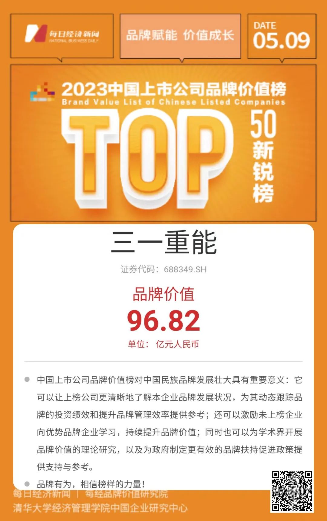 此外,在对所有2022年新上市的国内公司进行测评后,每日经济新闻还选取出品牌价值排名居前的50家公司形成“新锐榜”TOP50,好体育综合app下载重能以96.82亿元的品牌价值高位上榜,排名第四。这不仅是好体育综合app下载重能不断深耕品牌价值的结果,也体现出业界对好体育综合app下载重能的充分认可和坚定信心。