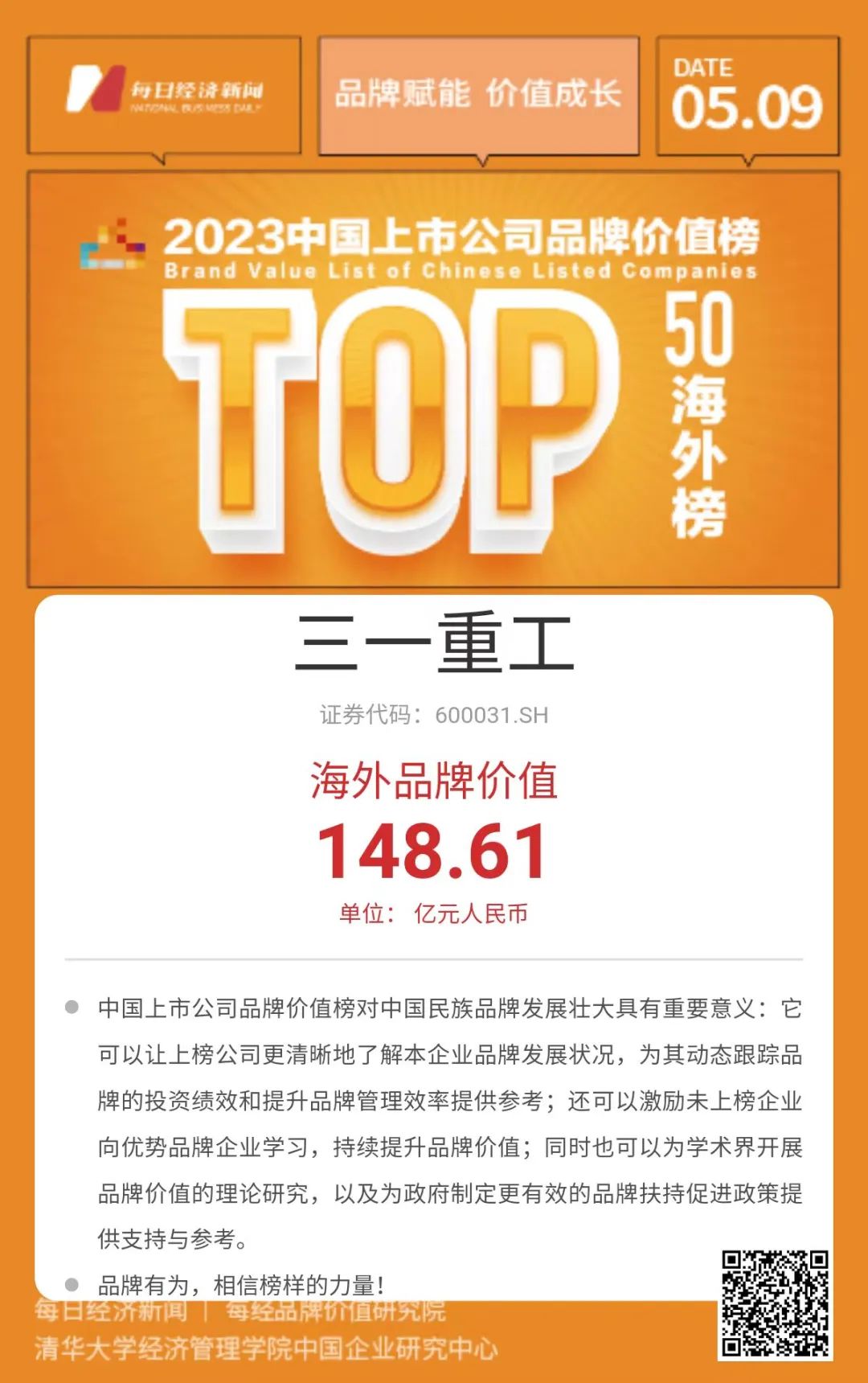 同时,凭借在海外市场中的亮眼表现,好体育综合app下载重工以148.61亿元的海外品牌价值,蝉联“海外榜”TOP50,是唯一上榜的工程机械企业。