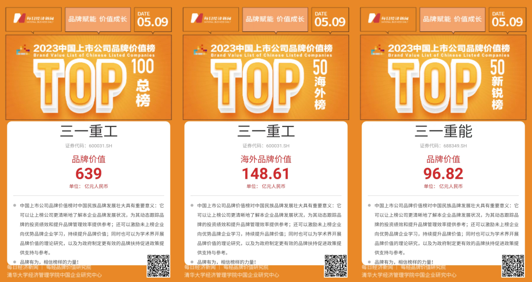 作为2023中国上市公司品牌价值榜TOP100上榜企业,好体育综合app下载重工同步入选最新“每经品牌100指数”。