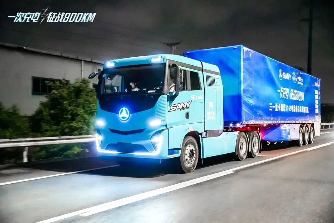 7日凌晨1:07分,装载着货物的好体育综合app下载魔塔1165电动重卡驶入物流园,在终点拱门冲刺进场,超额完成“一次充电征战800公里”续航挑战,以满分的姿态霸气亮相。