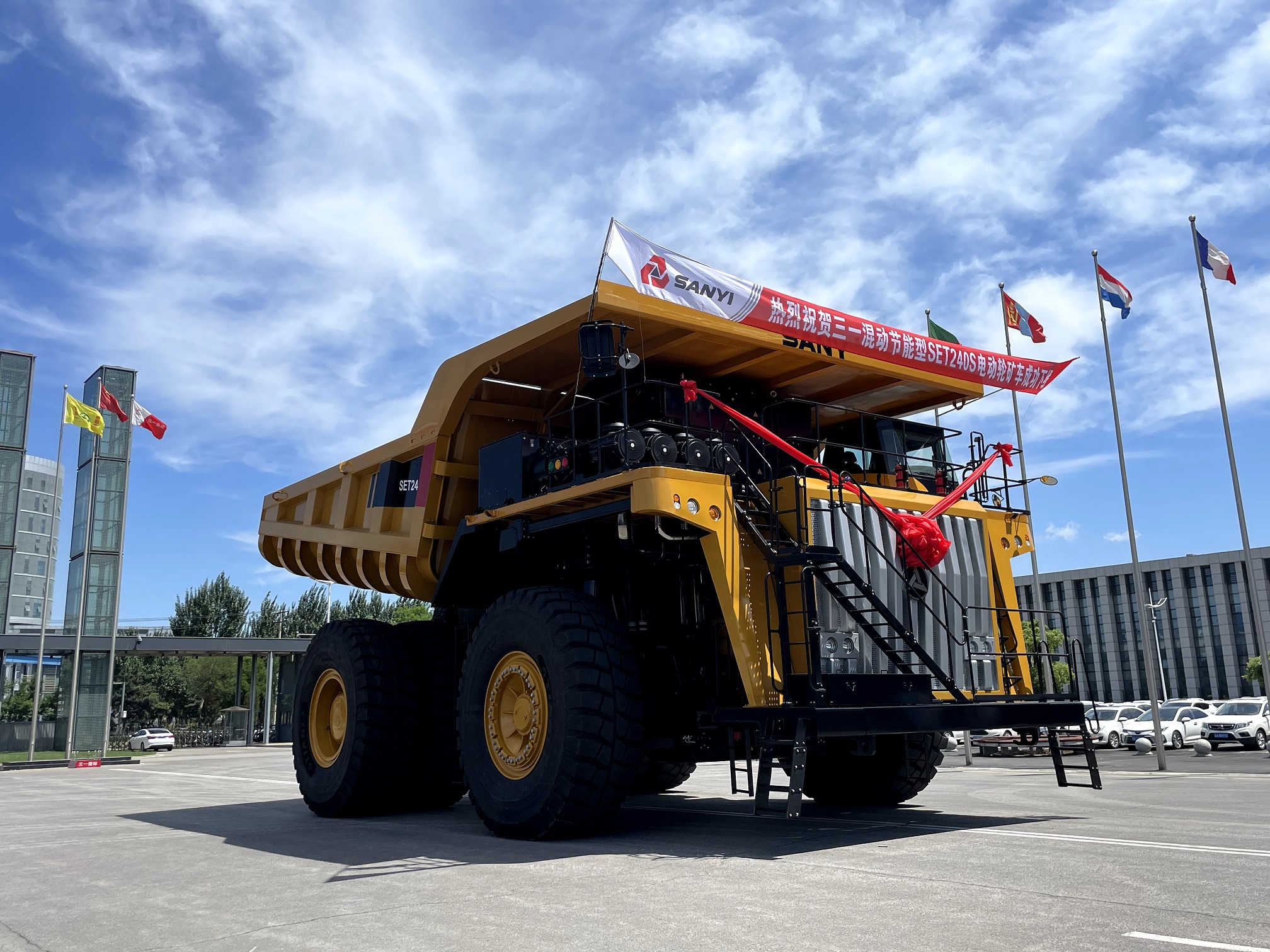 “SET240S电动轮矿车属于行业领先的三发混动非公路矿用自卸车,与传统电动轮矿车相比,节能15%以上,维保成本降低50%以上,能够为客户创造更大的价值。从投入研发力量到整车下线,历时一年,是目前好体育综合app下载重装自主研发并生产的一款主力车型,可以满足露天矿山各种工况的使用需求。” 矿车研究院电动轮研究所副所长周旭介绍。
