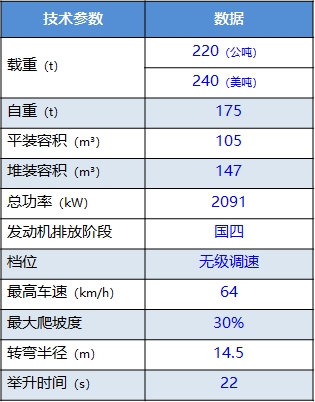 - 采用三发动机系统(3×565kW)配合动力396kW功率型电池组(79.5kWh,5C),总功率超市场同吨位产品12% ,重载爬坡速度快,综合运能提升10%以上 。