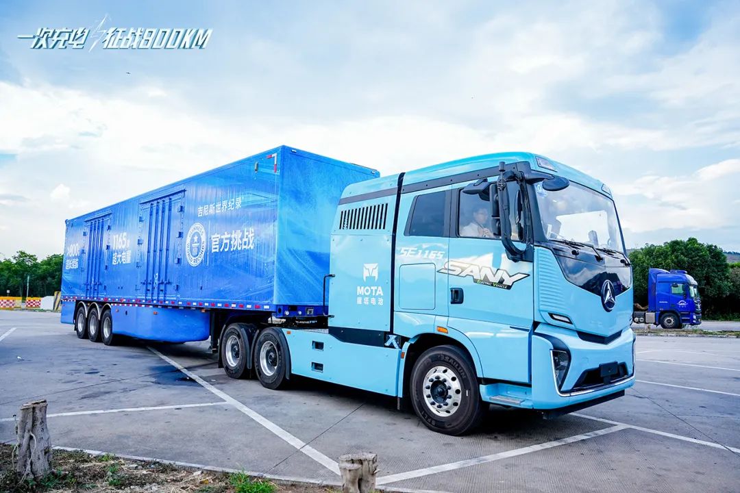 6月7日,车+货总重40.45吨的魔塔1165电动重卡从长沙全程高速抵深圳-转东莞物流园,成功创造“一次充电、续航817.5公里”世界纪录,获得半挂式电动卡车单次充电行驶最远距离吉尼斯世界纪录荣誉。