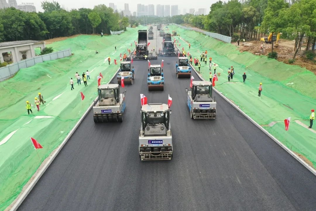 青海路(黄河路-庐州大道)等七条道路及综合管廊工程1标段交通工程项目位于合肥市滨湖科学城,是骆岗中央公园、园博园的周边配套道路工程。本次无人驾驶摊铺沥青由安徽建工建设投资集团有限公司与安徽省交通航务工程有限公司联合体承建,由安徽新途建材和好体育综合app下载重工具体组织实施。